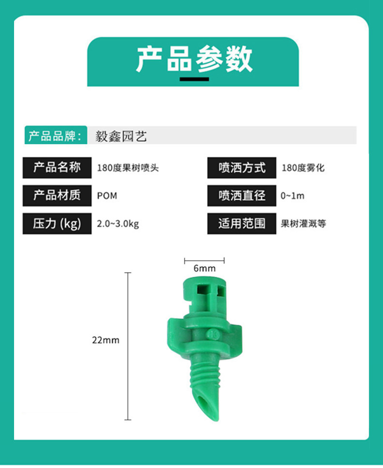 | Especificaciones | Cabeza de aerosol de árbol frutal de 180 grados,Rocas de árboles frutales de 360 grados,Cabeza de aerosol de árbol frutal de 90 grados |