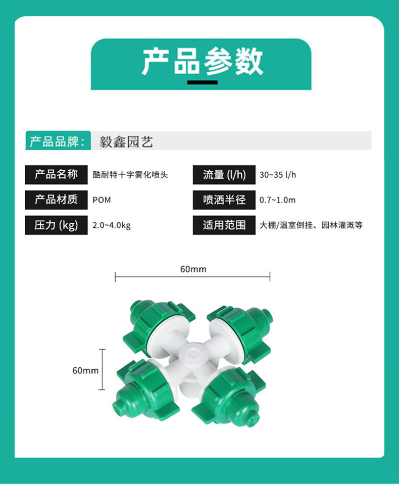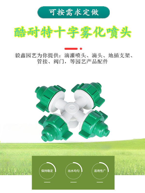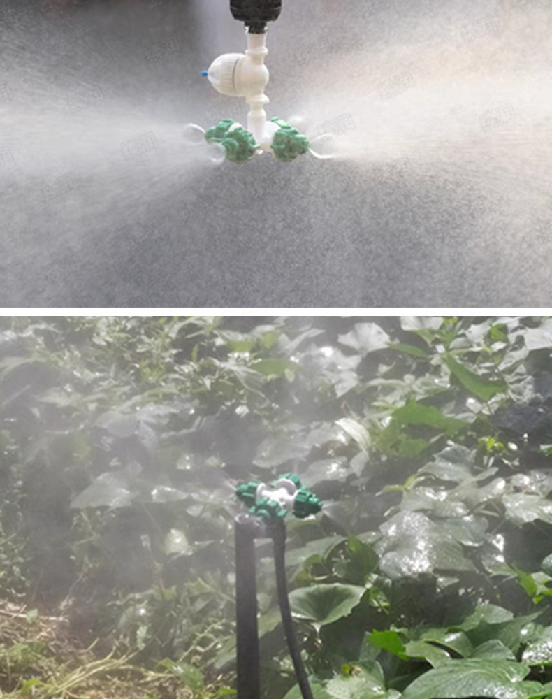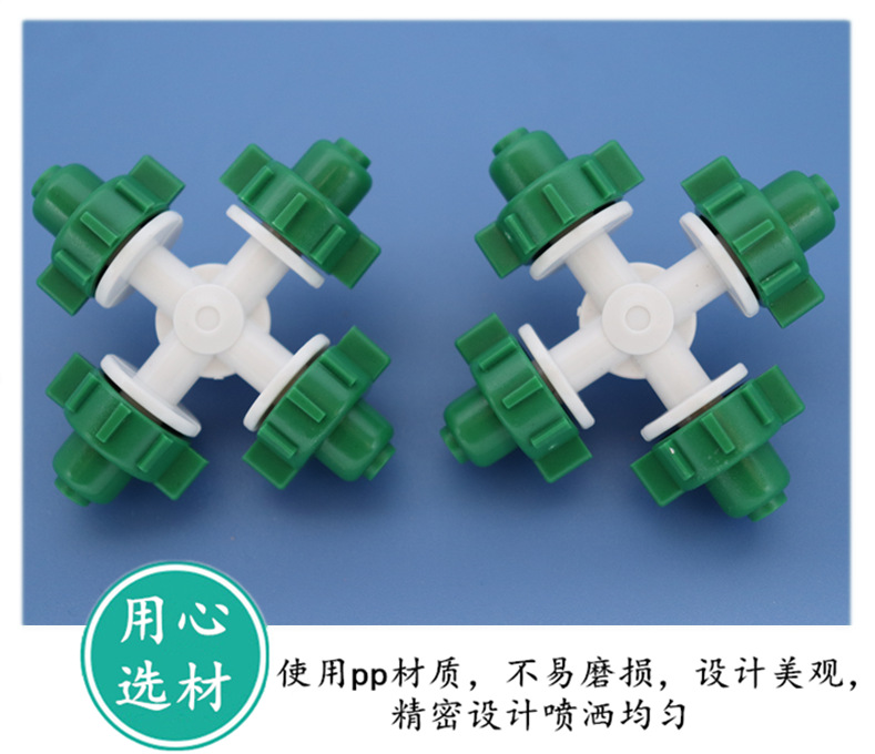 Cuatro salidas de Kunet cruzada atomización micro pulverizador de ahorro de agua riego pulverizador de atomización de riego en lecho de plántulas de raíces