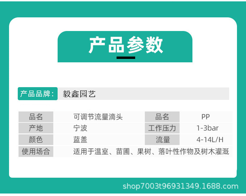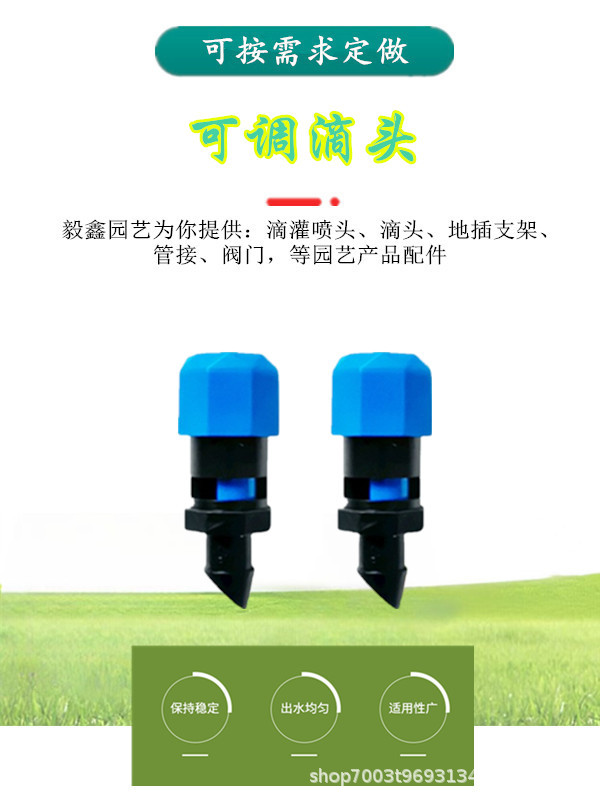 Cabecera de goteo de riego agrícola 0 - 260 litros con caudal ajustable y boquilla de compensación de presión ajustable para el riego de ahorro de agua