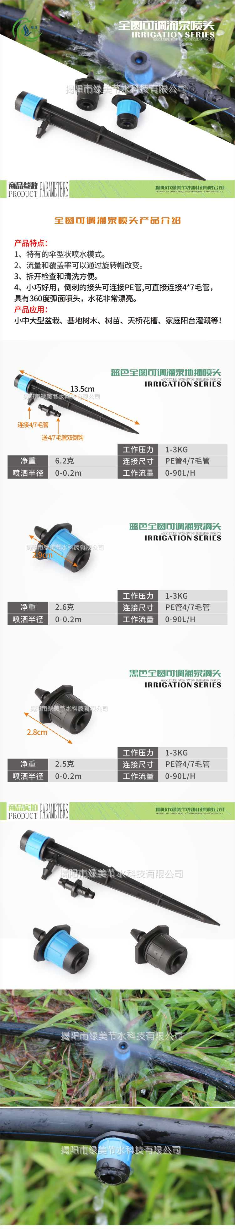 13 centímetros de rociador de injerto de primavera circular con 50cm4 / 7 tubo capilar de 8 agujeros ajustable de injerto de rociador de árboles frutales riego por goteo