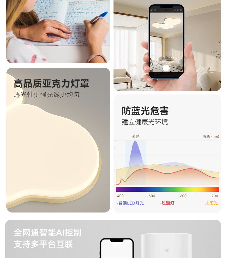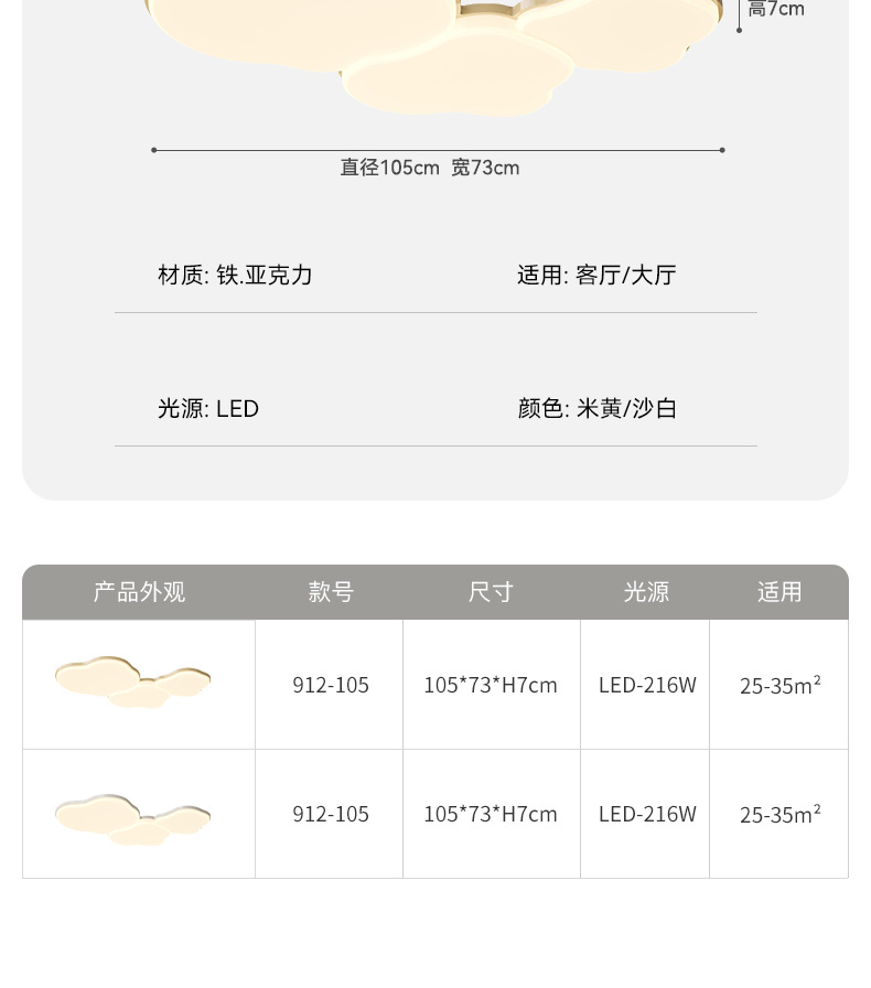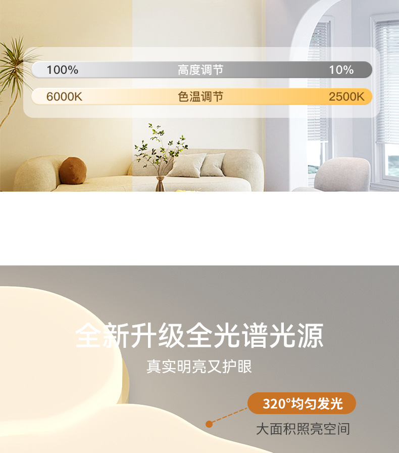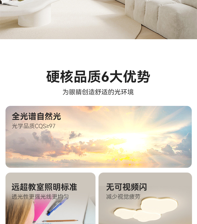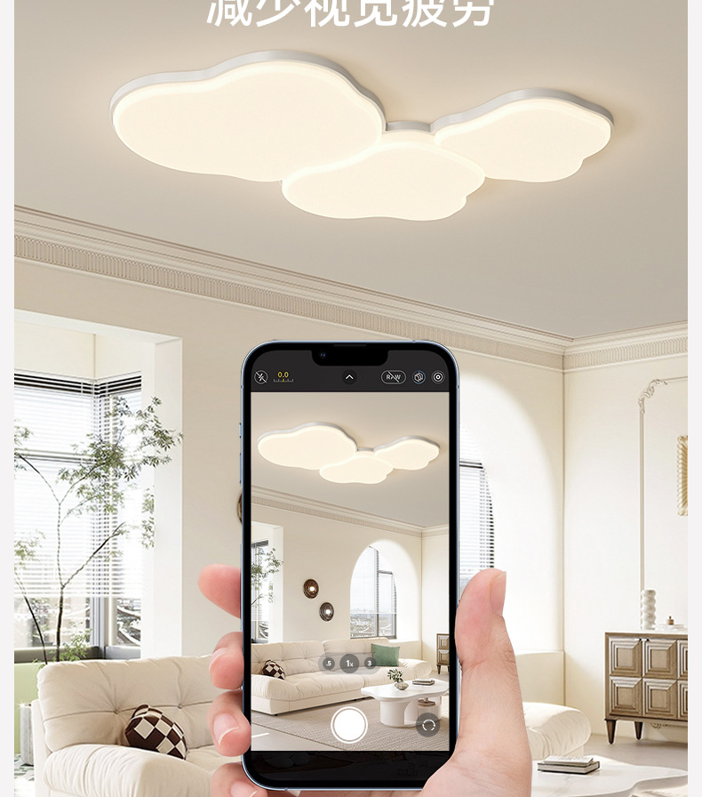 Luz de techo de nube de crema en 2025 nueva lámpara de sala de estar de protección de ojos simple lámpara moderna combinación de paquetes de toda la casa