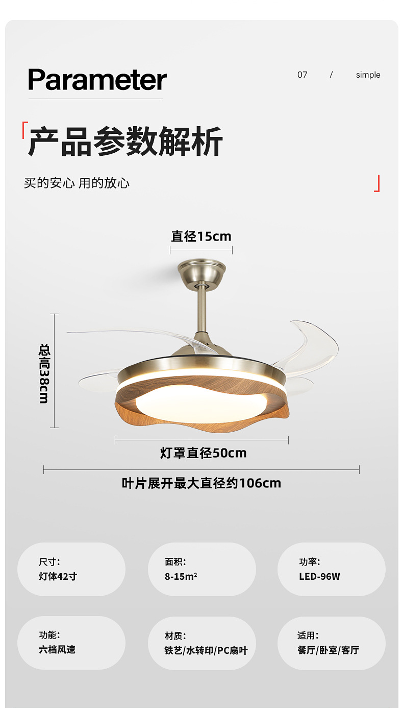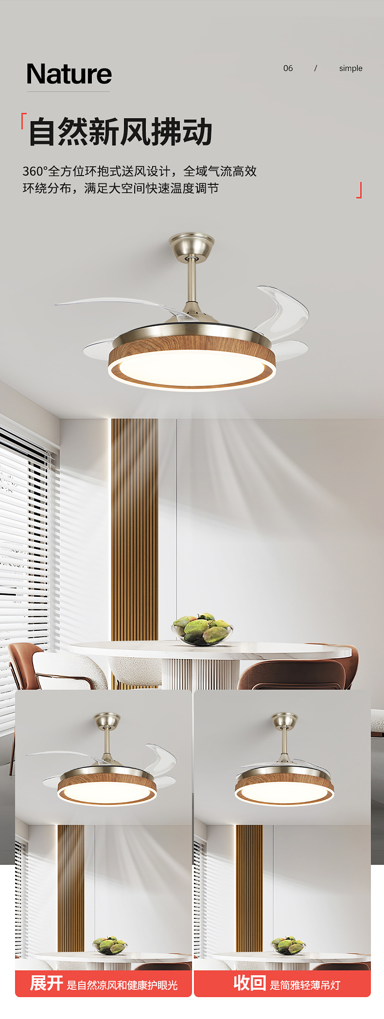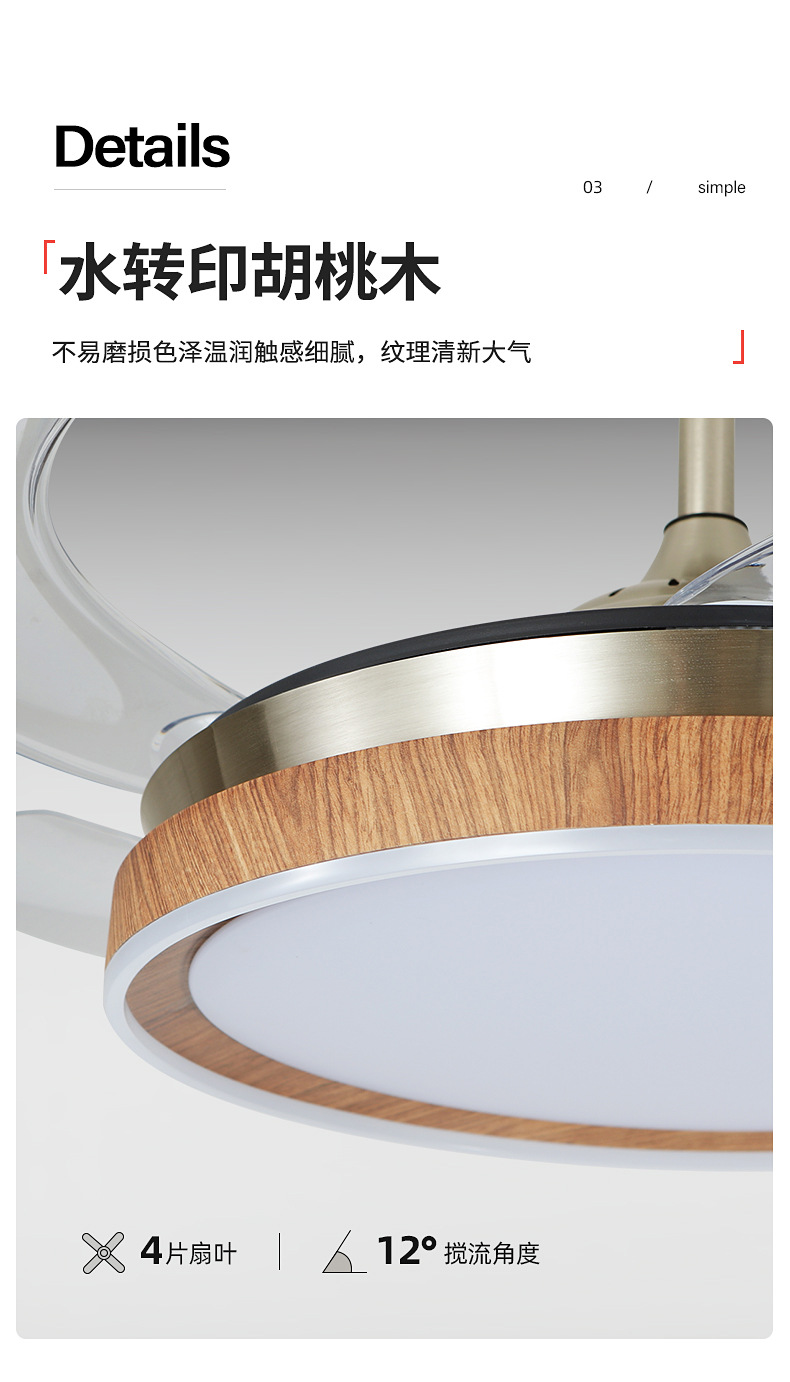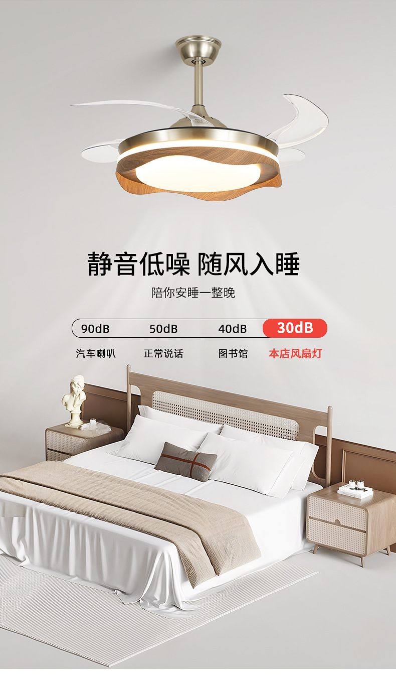 [Selección estricta] lámpara de ventilador de nuez nueva lámpara de ventilador invisible simple y silenciosa de alto nivel ventilador eléctrico lámpara de techo