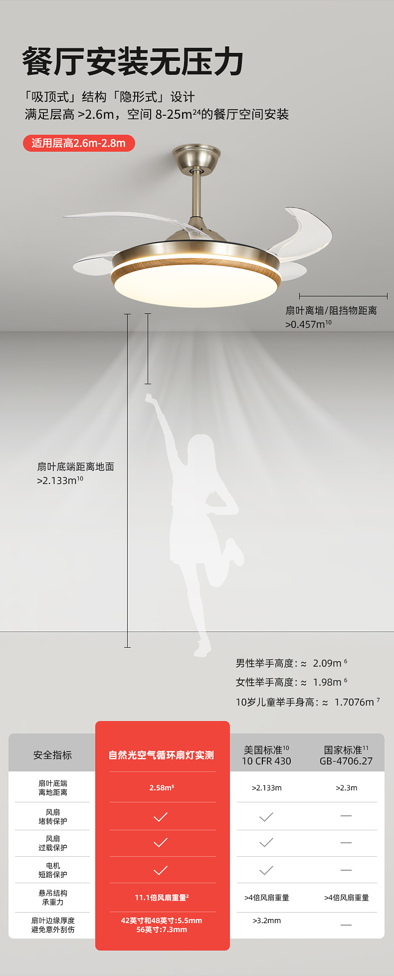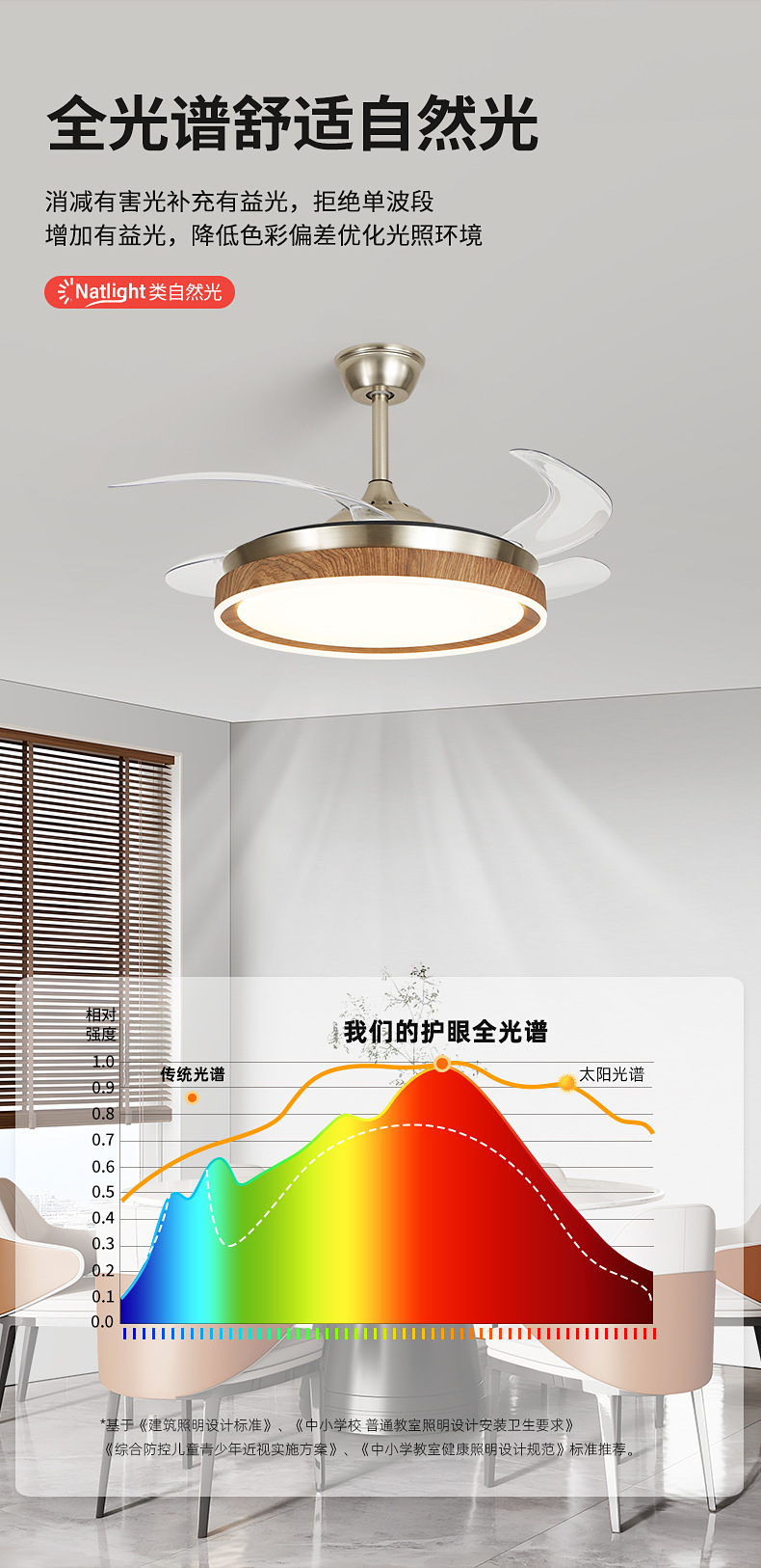 Espectro de luz completo, modelo a, ventilador de techo de 42 pulgadas - soporte para el control de xiaoai + control remoto