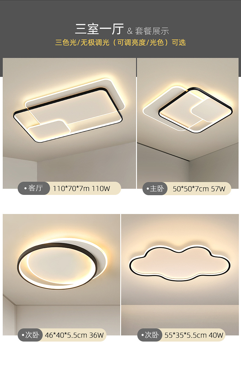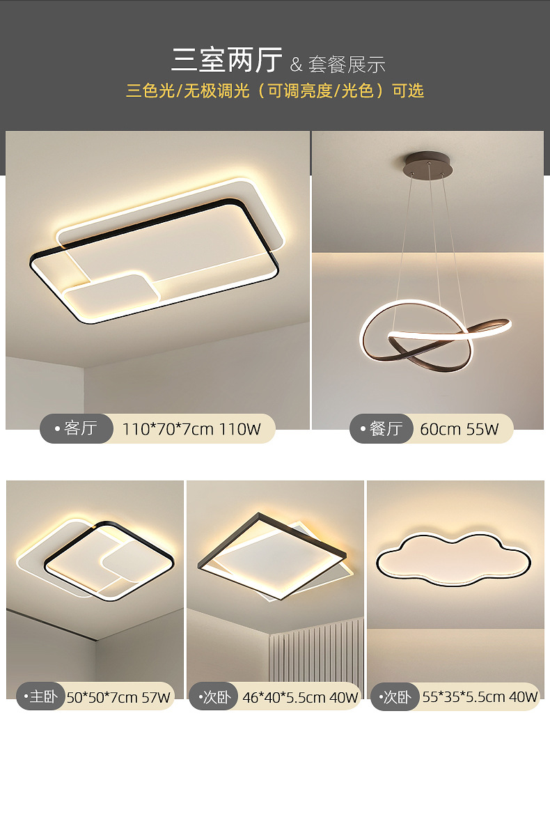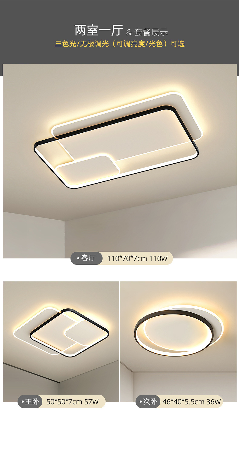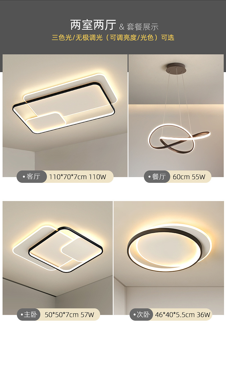 Luz de sala de estar, lámpara principal, lámpara de techo, lámparas Zhongshan, combinación de atmósfera simple, iluminación para el hogar, sensación de alto nivel.