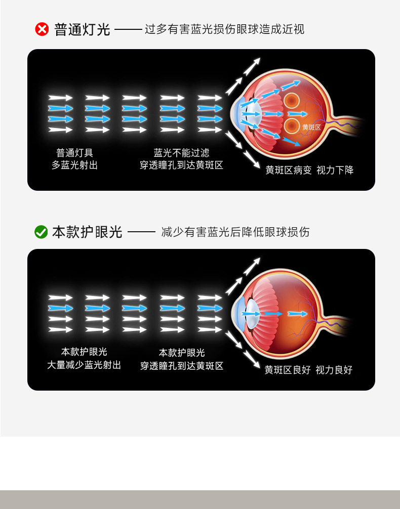 Luz de dormitorio negra de espectro completo cuadrada 50cm - Elfo TMall