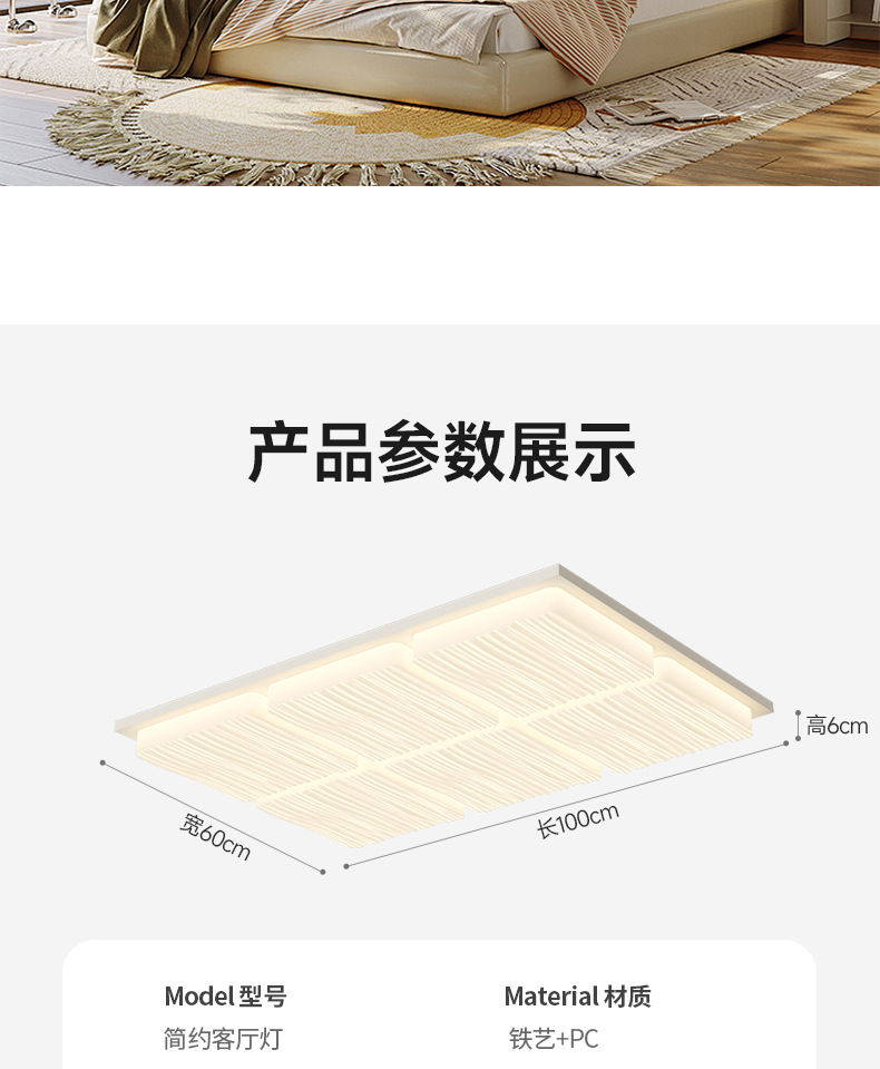 Lámpara de sala de estar blanca de espectro completo rectangular 98 * 68cm - Tmall Genie