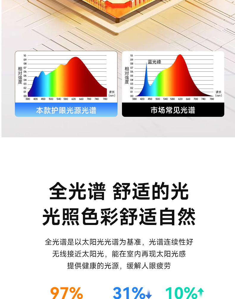 Lámpara de dormitorio blanca de espectro completo cuadrada 50cm - Tmall Elf