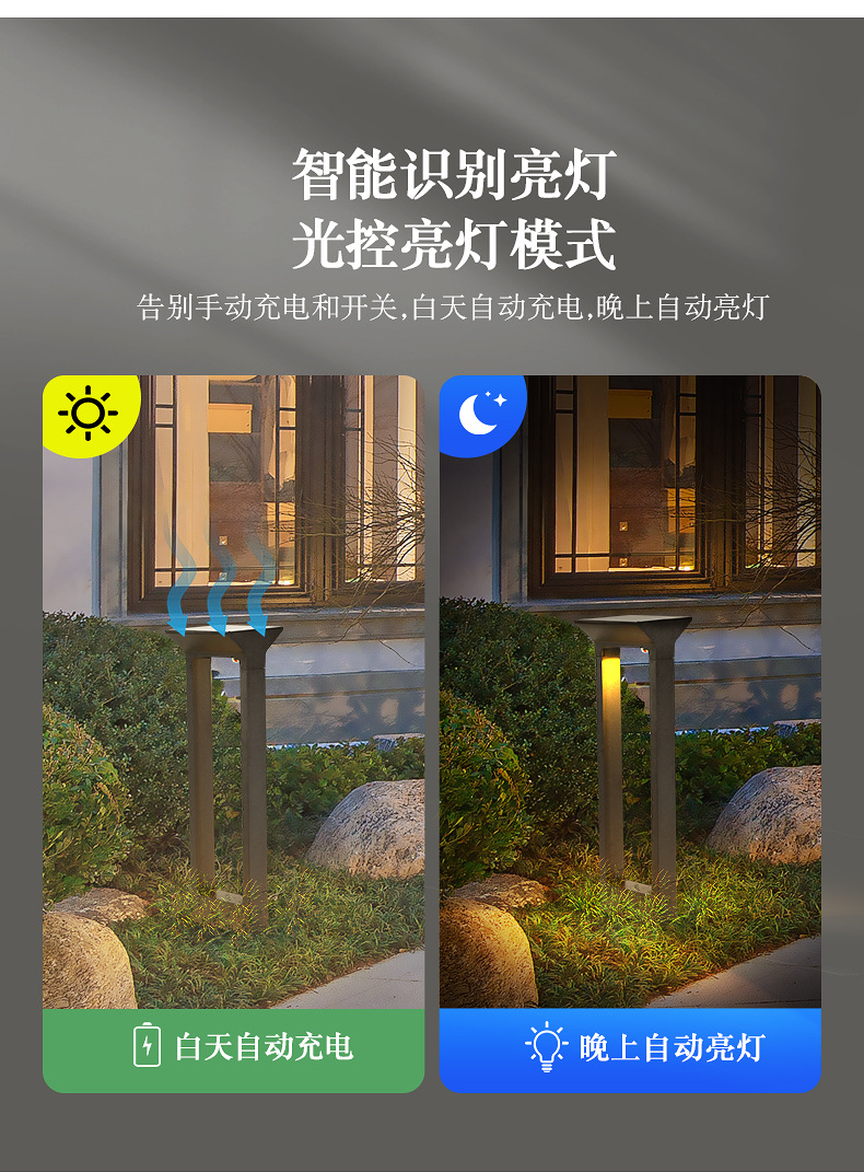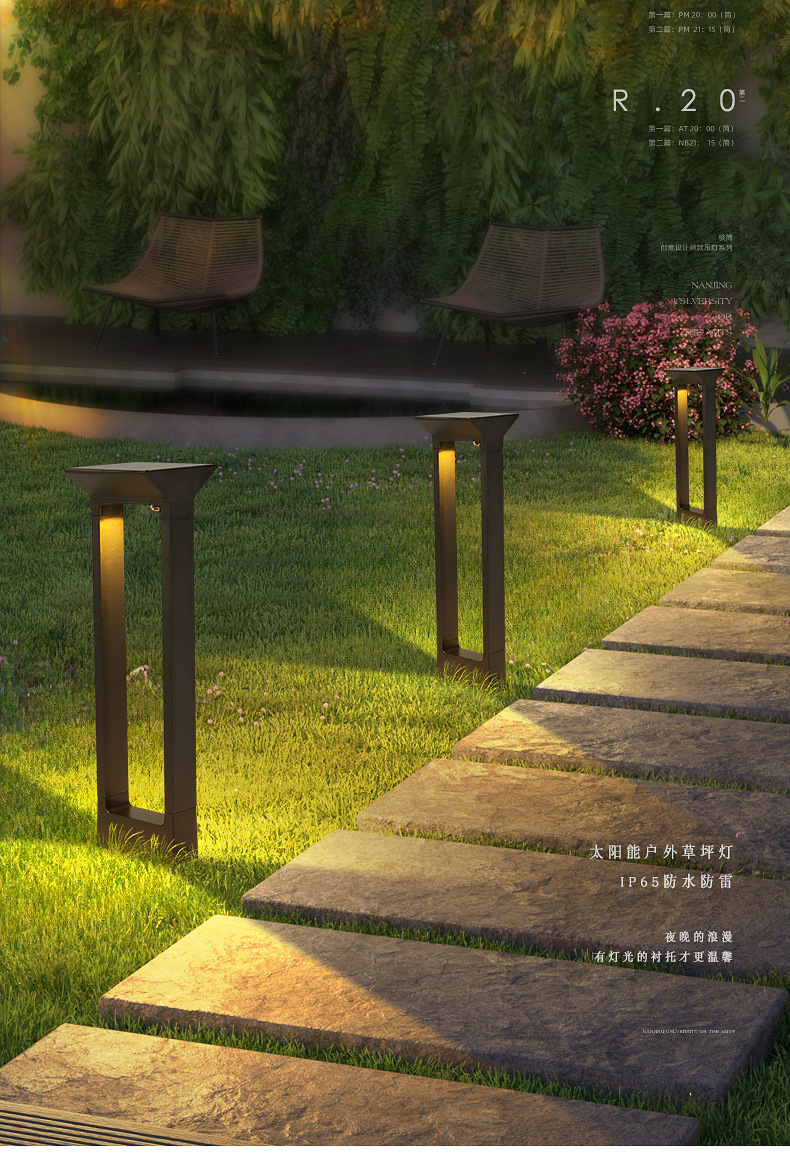 Luz solar al aire libre iluminación de patio ambiente de jardín doméstico diseño paisajístico impermeable decoración de la villa lámpara de césped