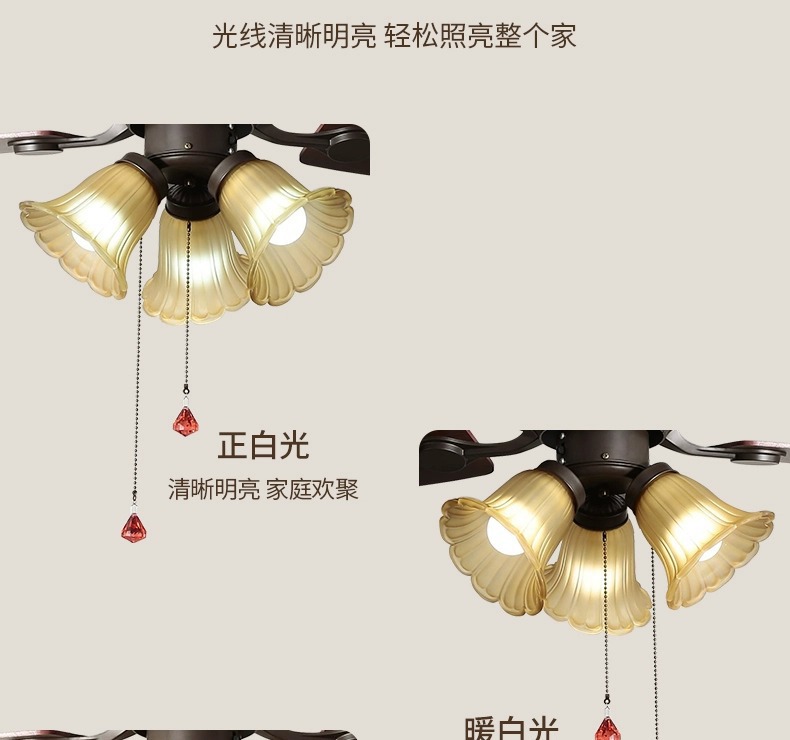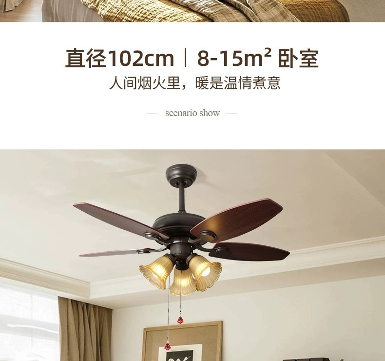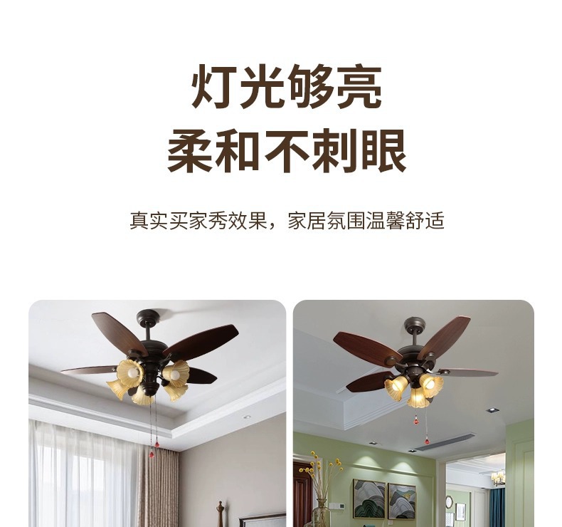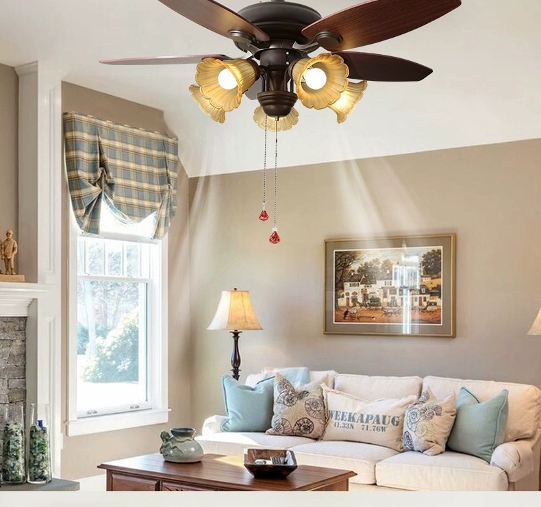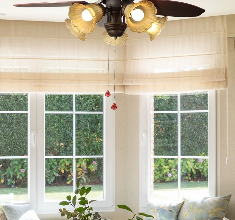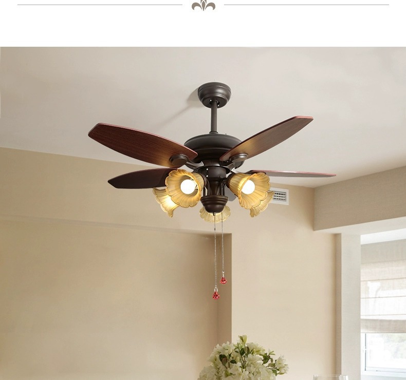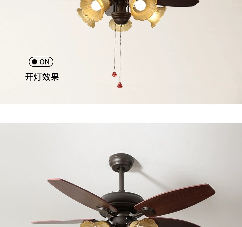 Lámpara de ventilador de comedor americano, lámpara de ventilador de techo doméstico, sala de estar, dormitorio, comedor, vidrio retro 2025, nueva lámpara
