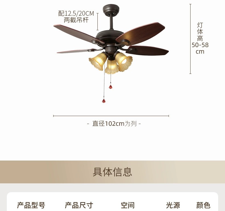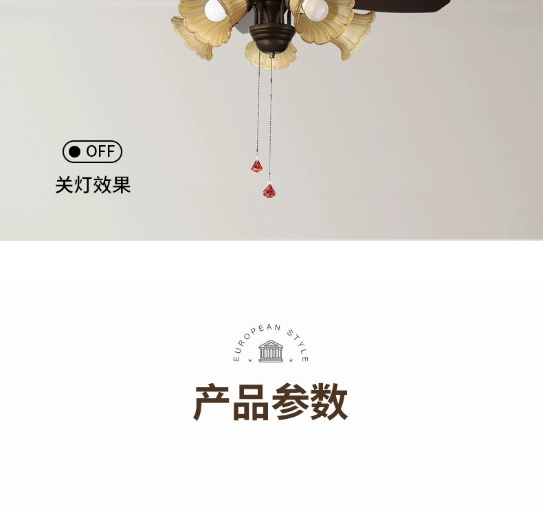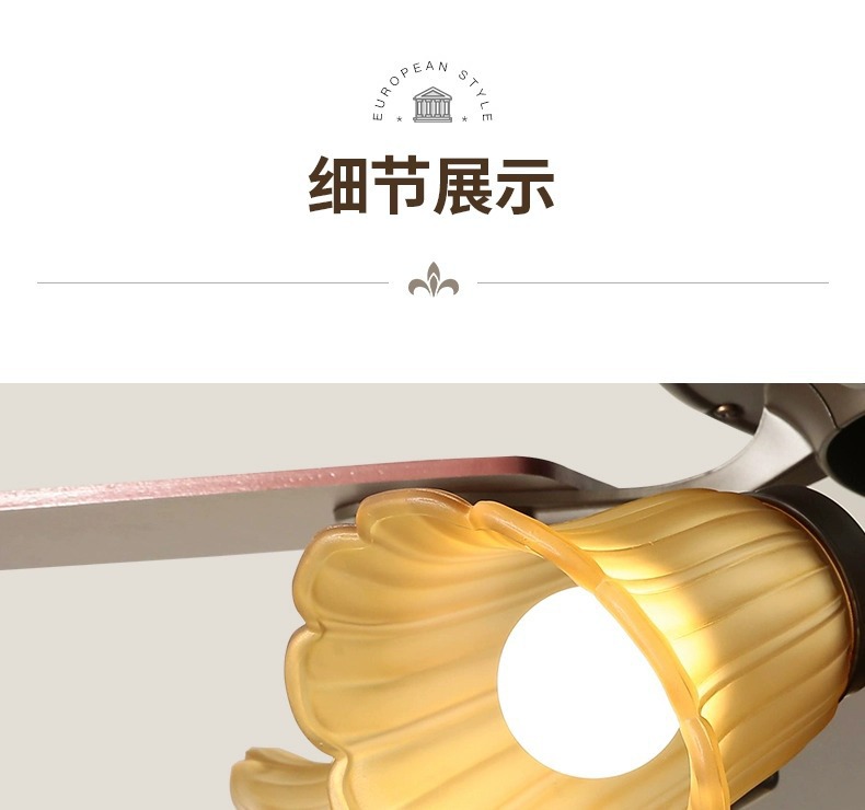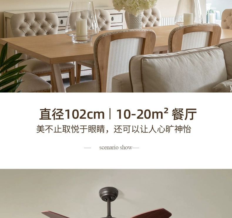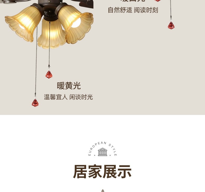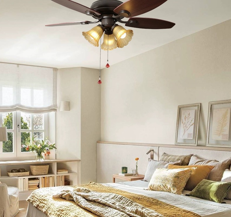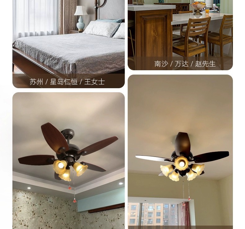 Lámpara de ventilador de comedor americano, lámpara de ventilador de techo doméstico, sala de estar, dormitorio, comedor, vidrio retro 2025, nueva lámpara
