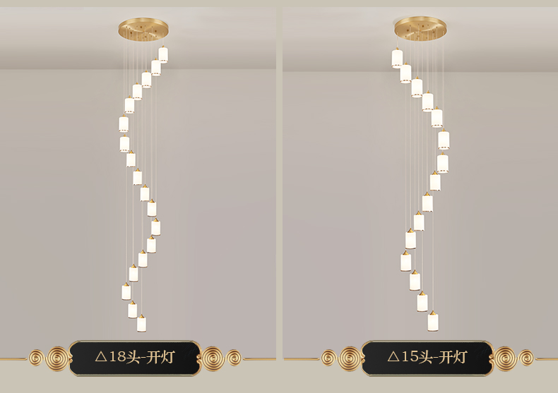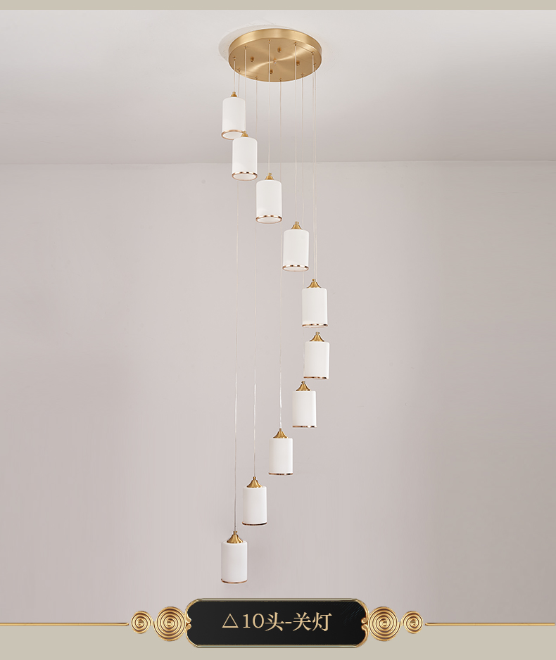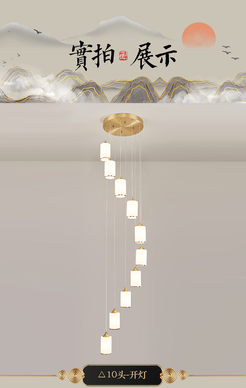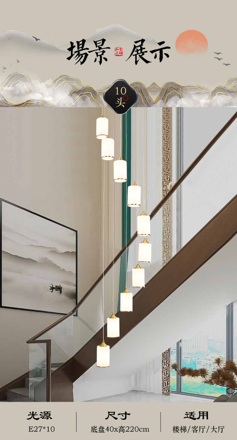 Nueva escalera china de cobre toda la lámpara de la casa de la sala de estar del comedor de la lámpara de salto alto hueco giratorio largo lámpara de la casa de la lámpara