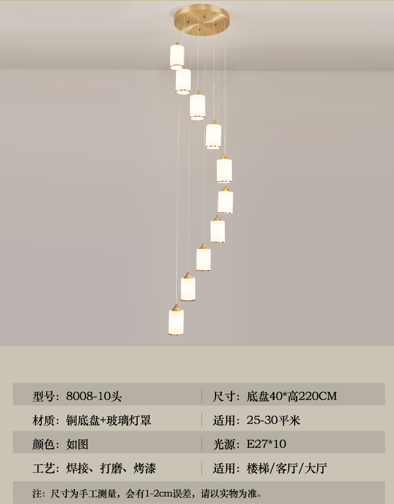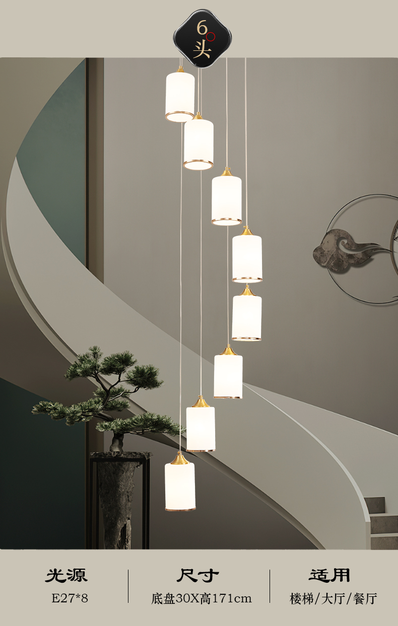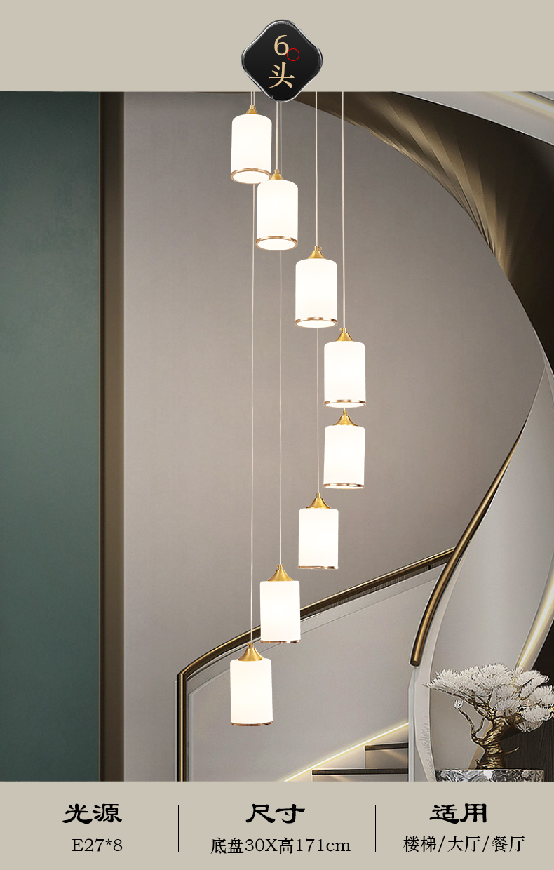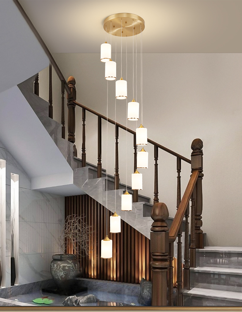 Nueva escalera china de cobre toda la lámpara de la casa de la sala de estar del comedor de la lámpara de salto alto hueco giratorio largo lámpara de la casa de la lámpara