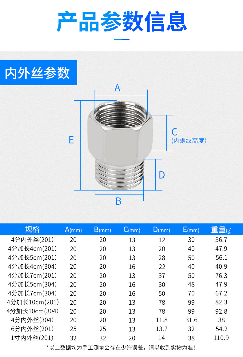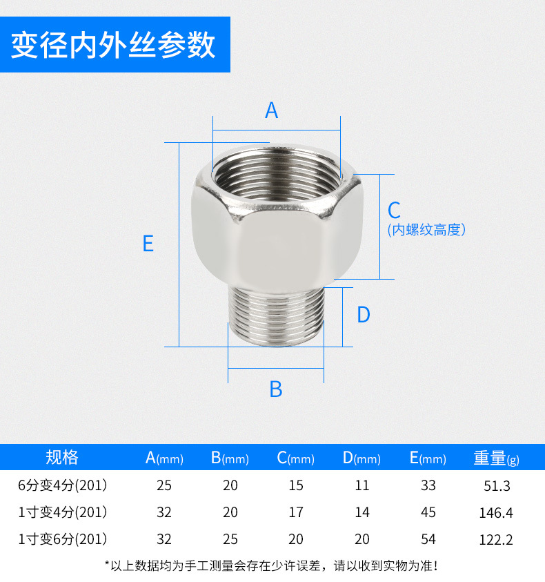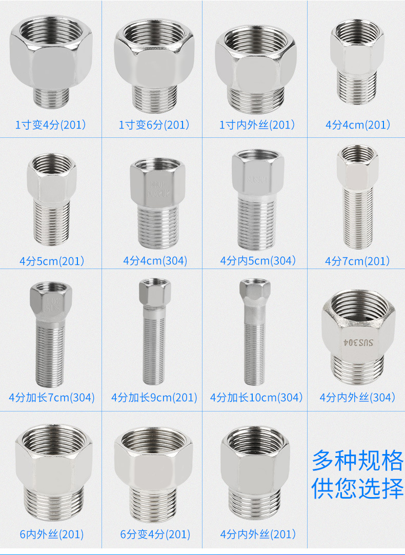 Acero inoxidable filamento interno y filamento externo directo acoplamiento de filamento interno engrosado alargado 6 minutos girar 4 puntos de diámetro reducido accesorios de tubería de agua