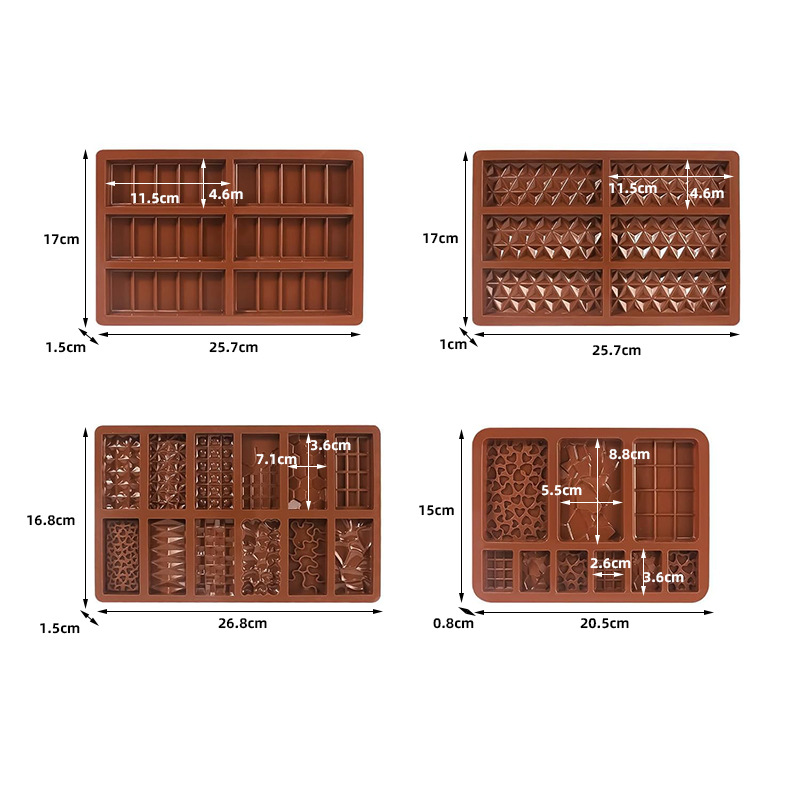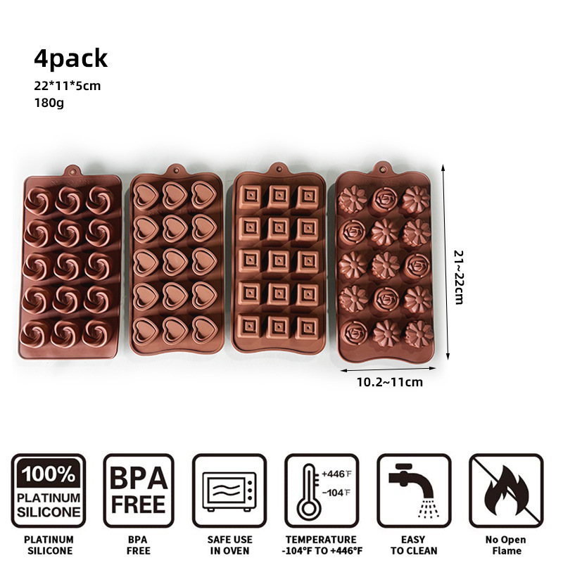 | Colores | Set de 4 piezas de chocolate "Doble Amor" Grupo A,Tulipanes grupo B 4 tipos de flores set de 4 piezas,Grupo C cinco estrellas + corazón + palabra de retorno + rosa cóncava juego de 4 piezas,Grupo D: Rosa en relieve + Corazón + Carácter "Devolución" + 3 Tipos de Flores, Juego de 4 Piezas,E group Dubai 10 rejilla chocolate 2 + raspador set 3 piezas,F Group Dubai Set 2 en 1 Chocolate 2 + Raspador 3 Piezas,H Group Dubai Juego de 6 piezas de chocolate con rejilla 30/60, 2 raspadores y set de 3 piezas.,Juego de 2 cajas de bombones de Dubái con 10 compartimentos,J Group Dubai Set de regalo de chocolate 2 en 1 (2 piezas),K Group Dubai Juego de 2 piezas de chocolate cuadrado 30/60 de 6 piezas,L Group Dubai Molde para chocolate de 6 cavidades y 30 compartimentos, juego de 2 piezas,Molde diamantado de 6 piezas con rascador, juego de 3 piezas.,Conjunto de 2 piezas de bombones tipo waffle de Dubái, grupo N, de 12 unidades.,Set O: Set de Regalo de Chocolate Dubái de 12/6/9 Piezas |