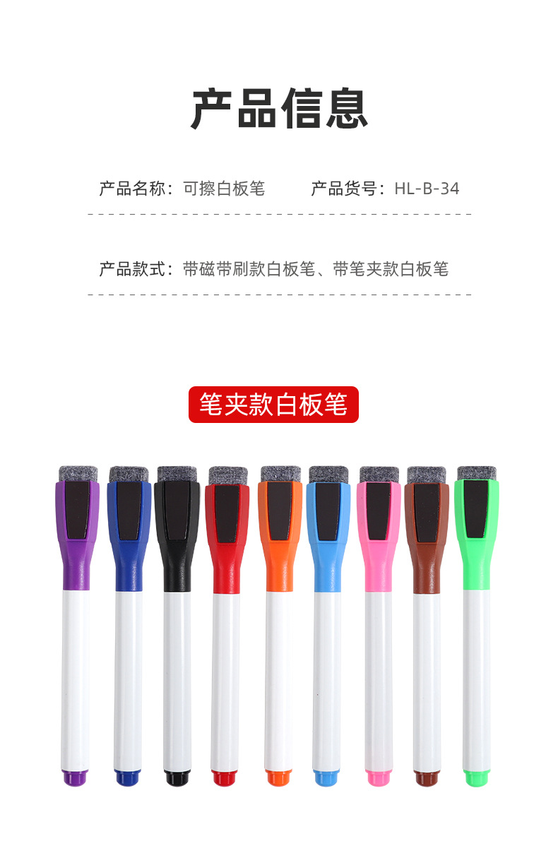 Fabricantes personalizados de absorción magnética pizarra borrable con cepillo lápiz de limpieza seca lápiz de pizarra de oficina lápiz de pintura de color infantil lápiz de color