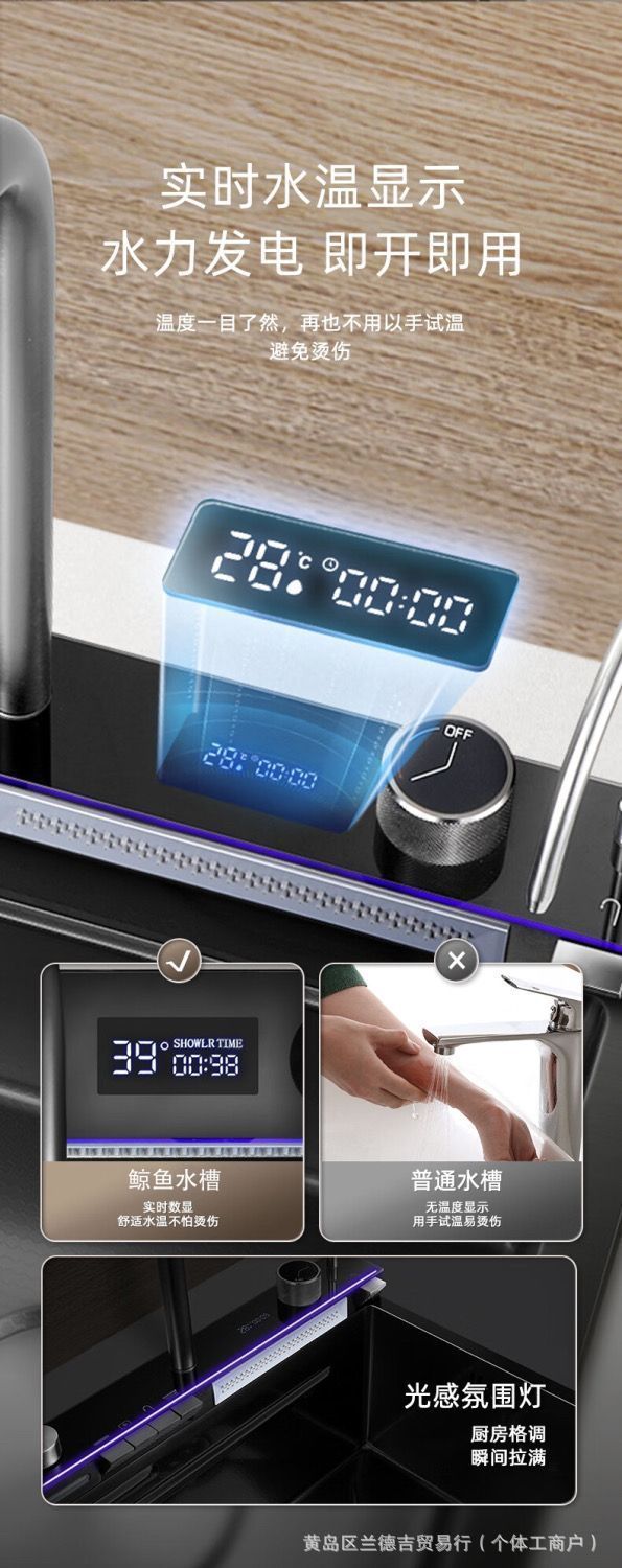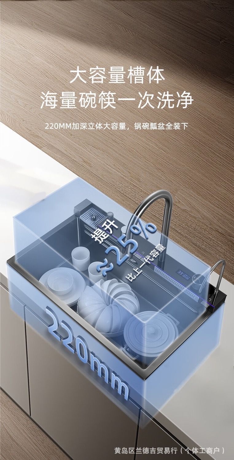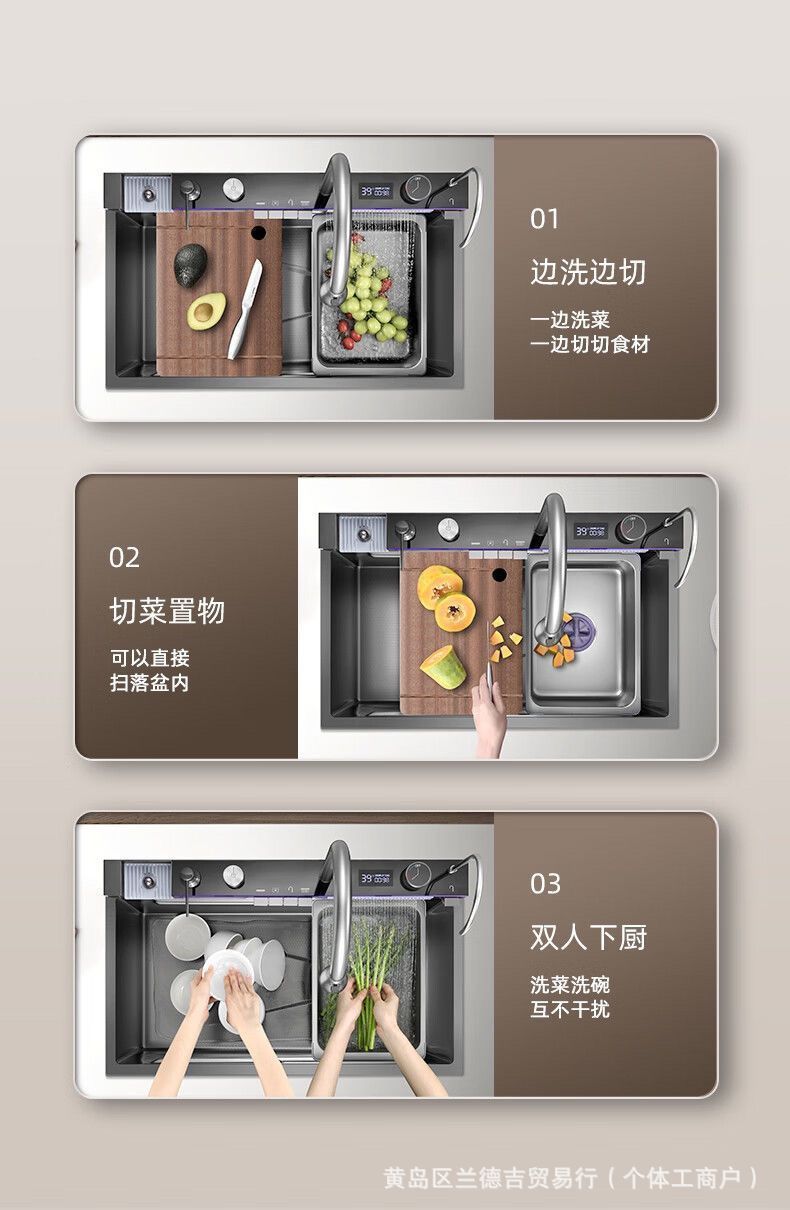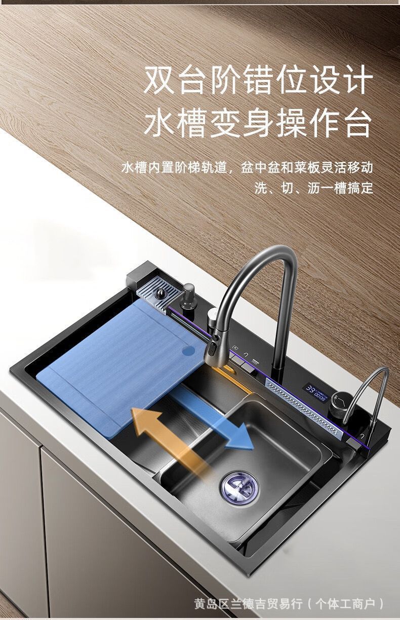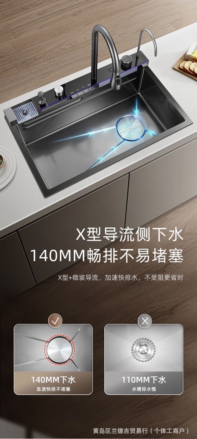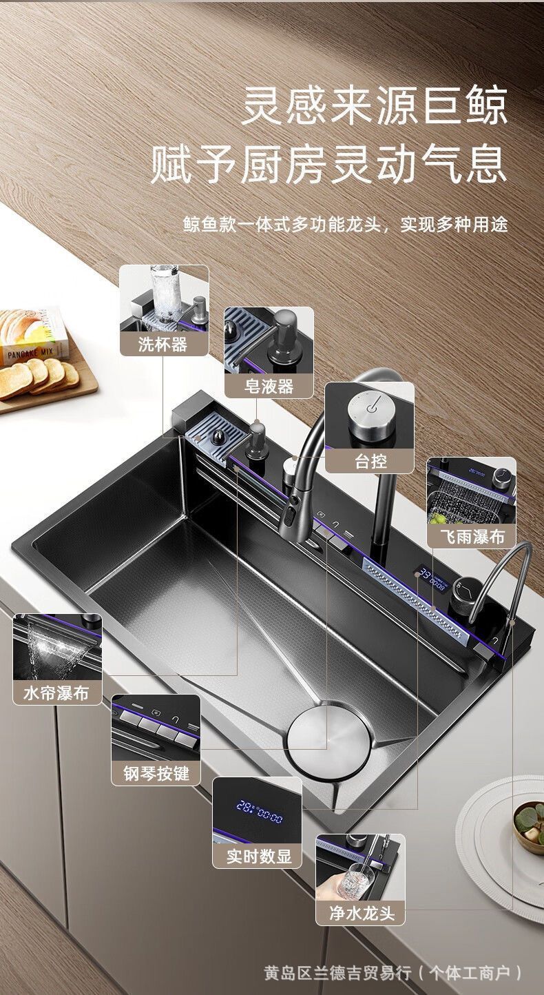 5MM engrosado cocina digital ballenas voladores canales de lluvia cascada de canal único nano panal de lavado de verduras 304 acero inoxidable doméstico