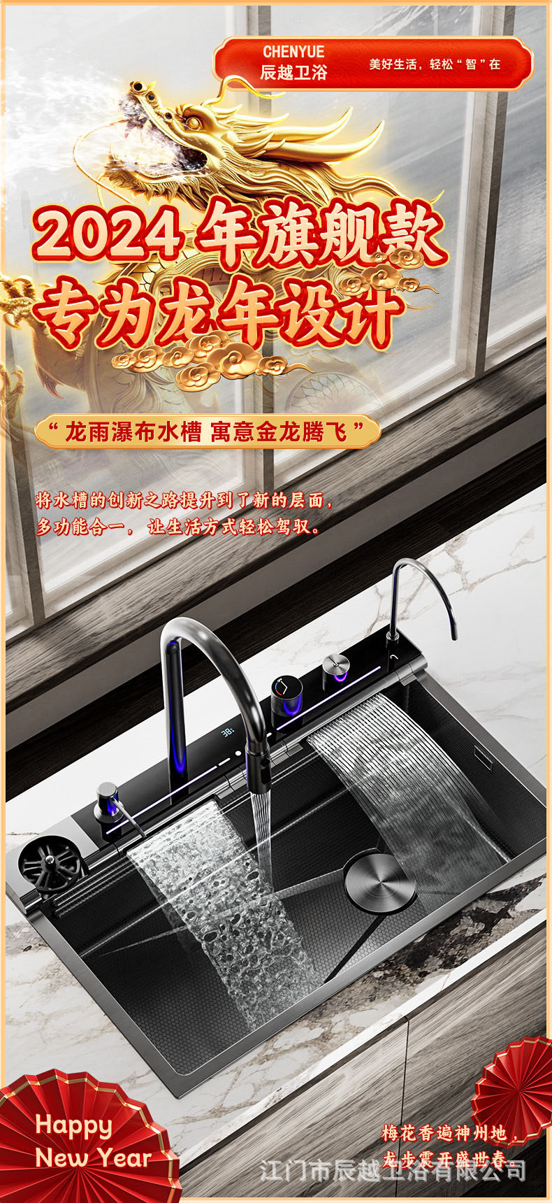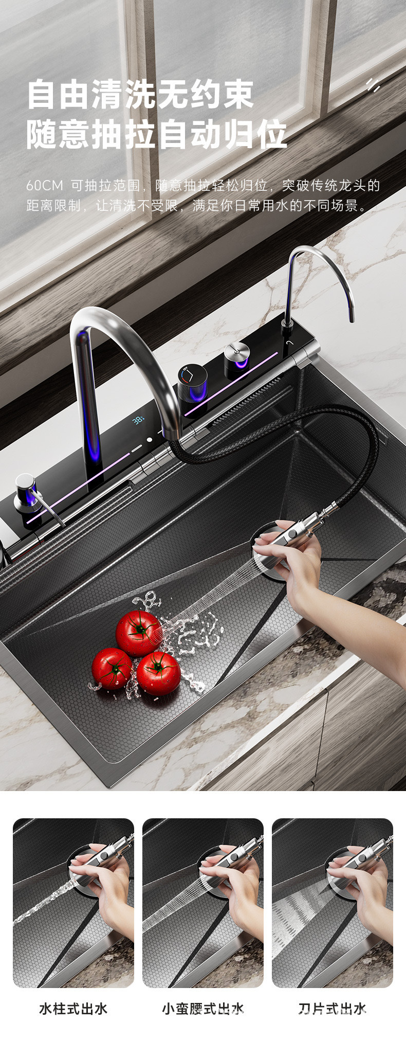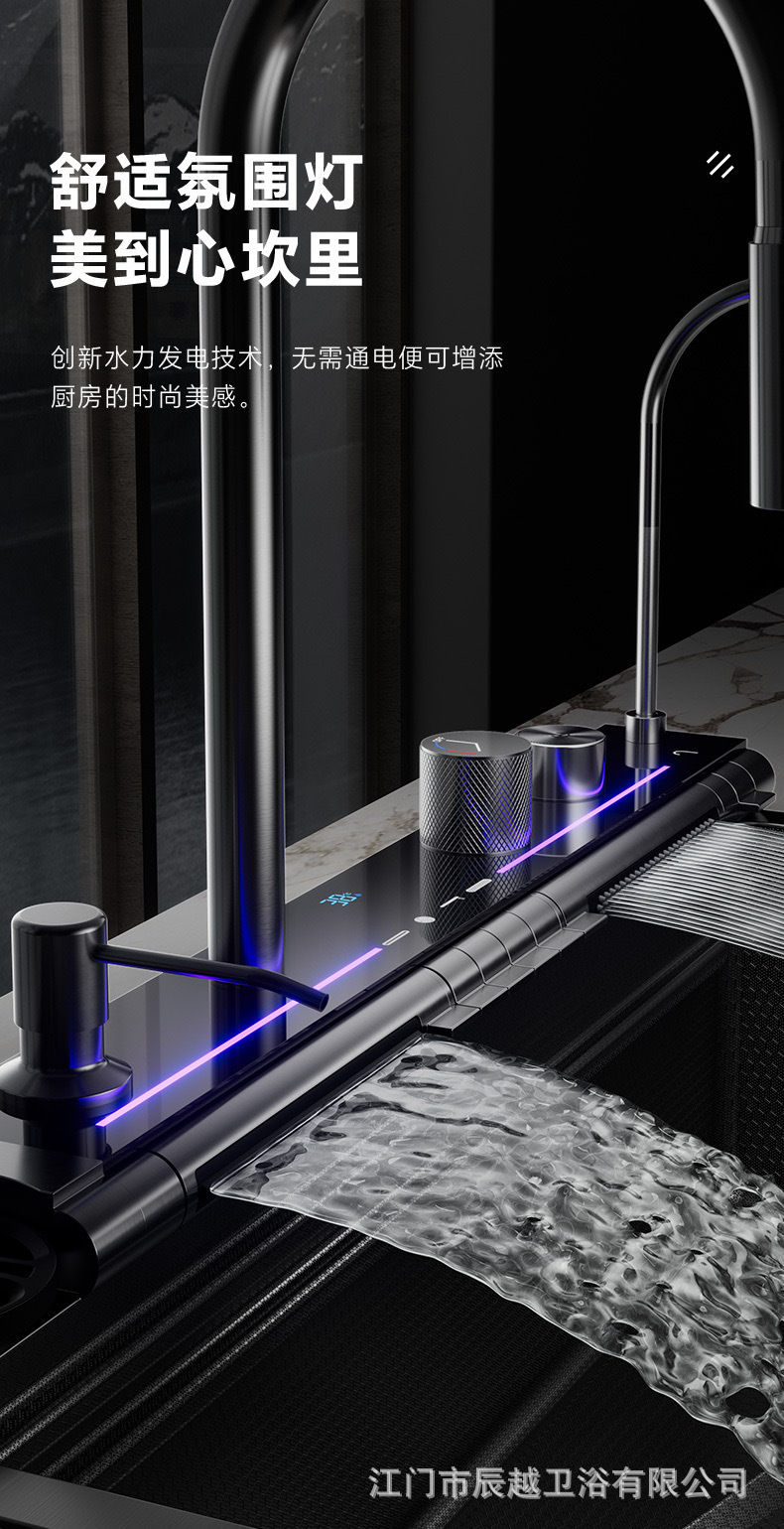 Transfronterizo SUS304 ballena azul dragón lluvia cascada fregadero nano pantalla digital panal cocina multifuncional lavavajillas gran tanque único