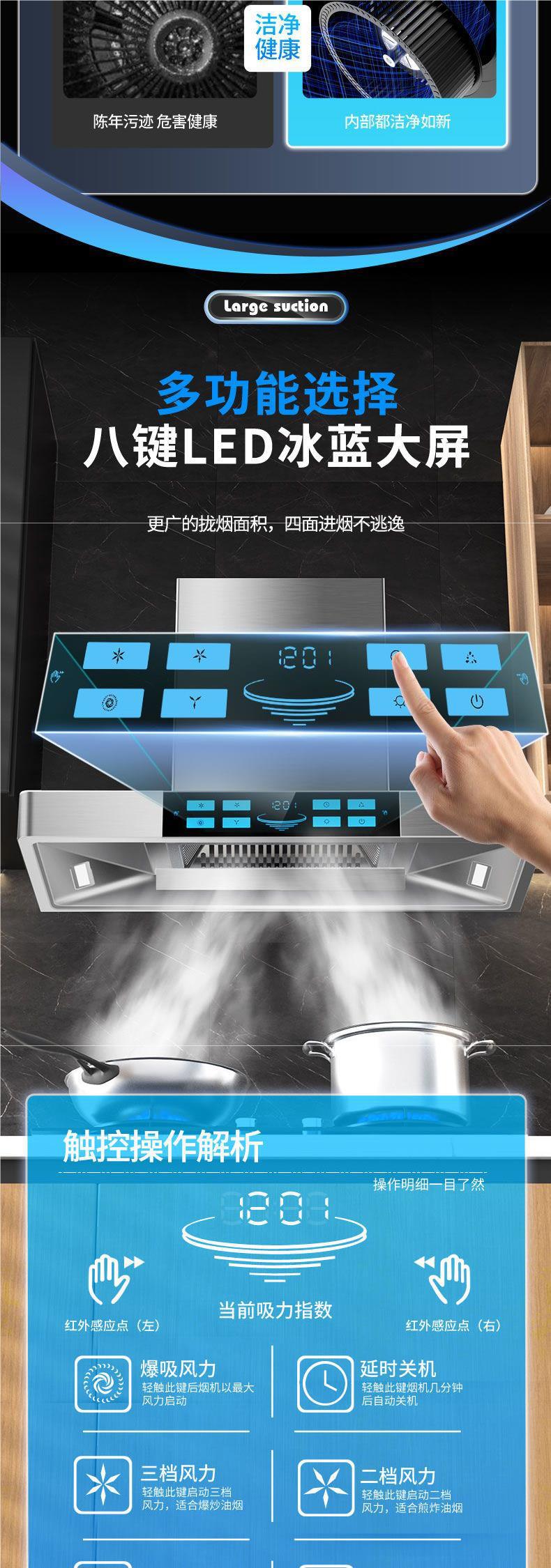 Cocina doméstica de buena esposa, cocina doméstica de alta aspiración, ventilador inteligente de frecuencia, ventilador de limpieza automática, ventilador de limpieza