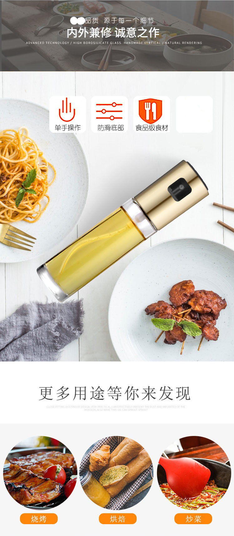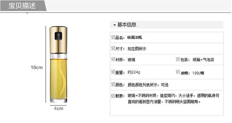 Spray aceite Spray botella cocina Spray Aceite spray puede niebla grasa reducción neumática aceite de oliva vidrio spray puede atomización