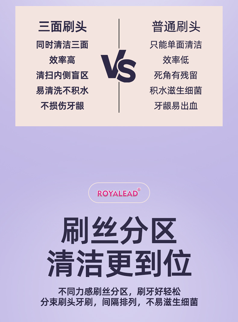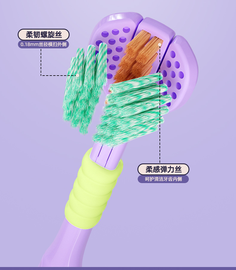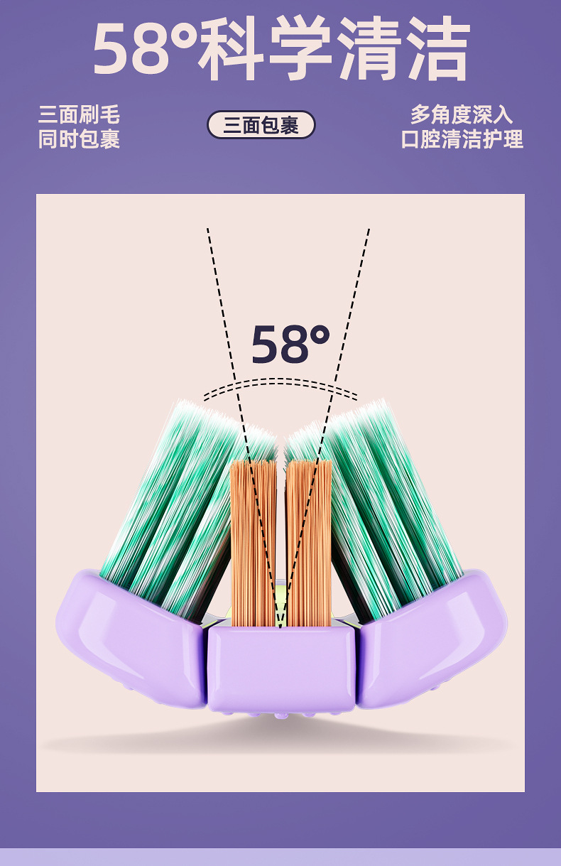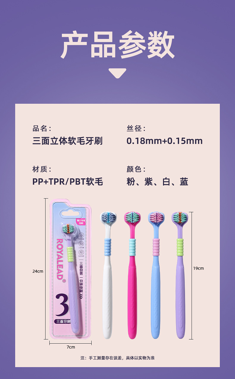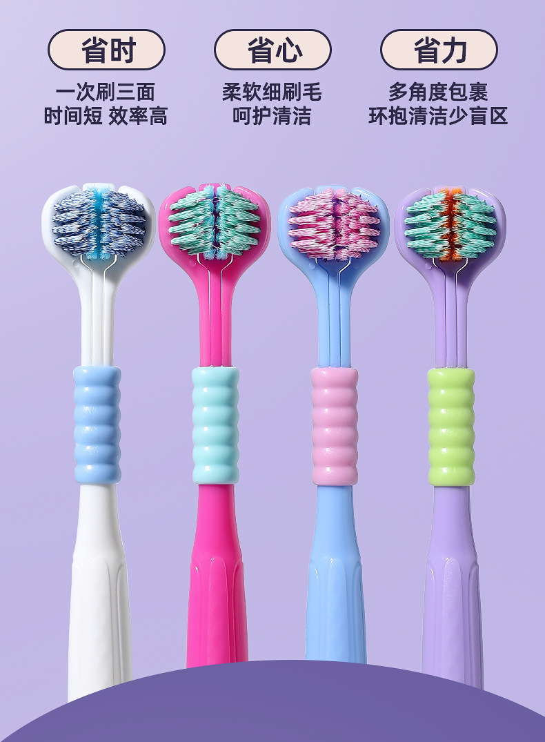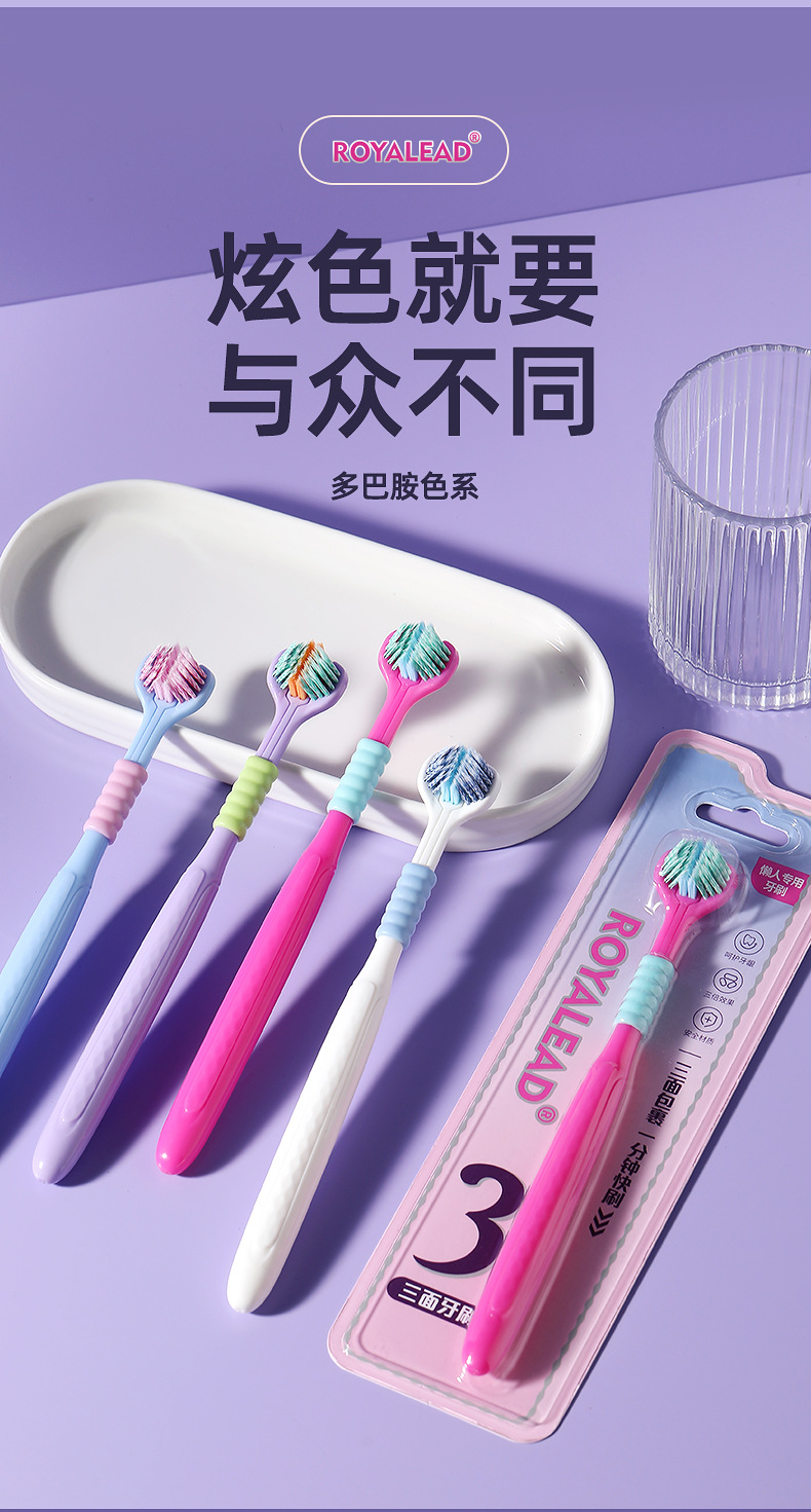 Cepillo de dientes colorido tridimensional de tres lados para el hogar para adultos RAOYI, paquete único, limpieza de paquetes completos, cepillo de dientes de cerdas suaves de alta calidad