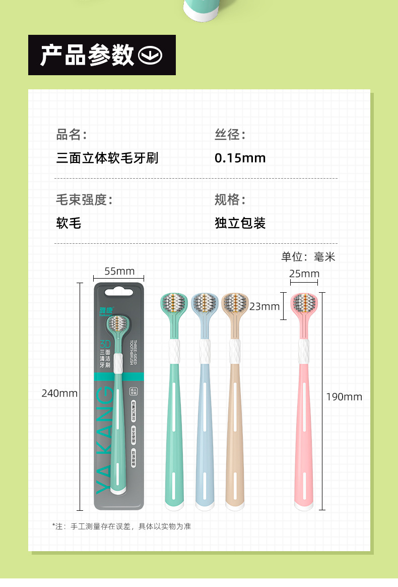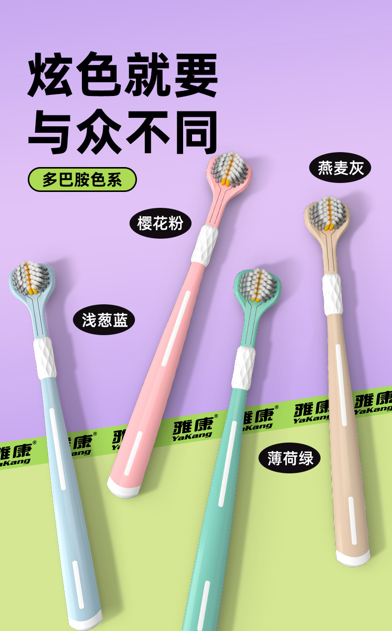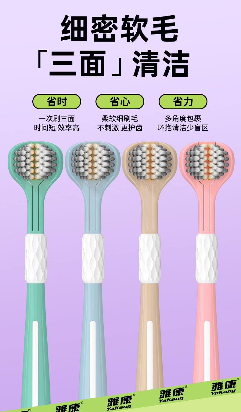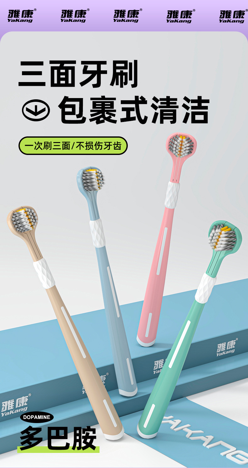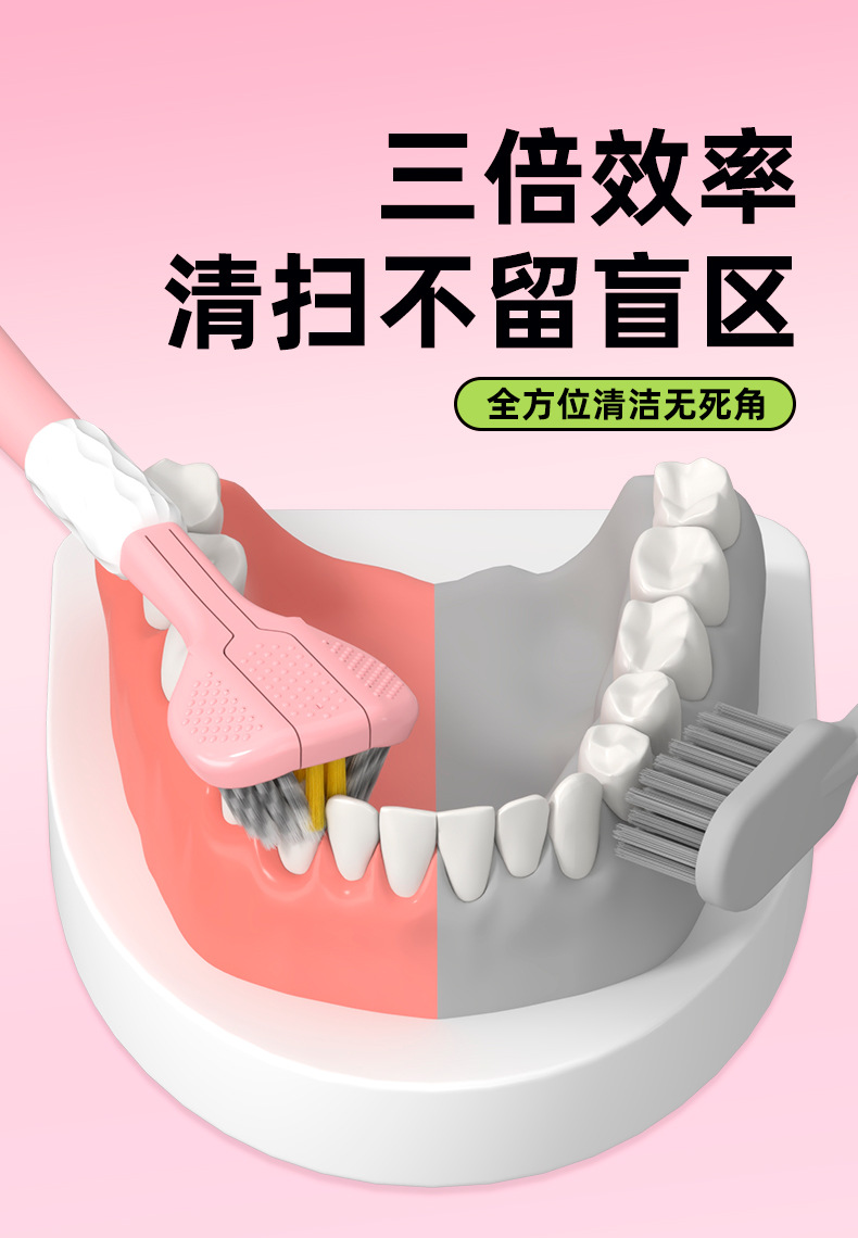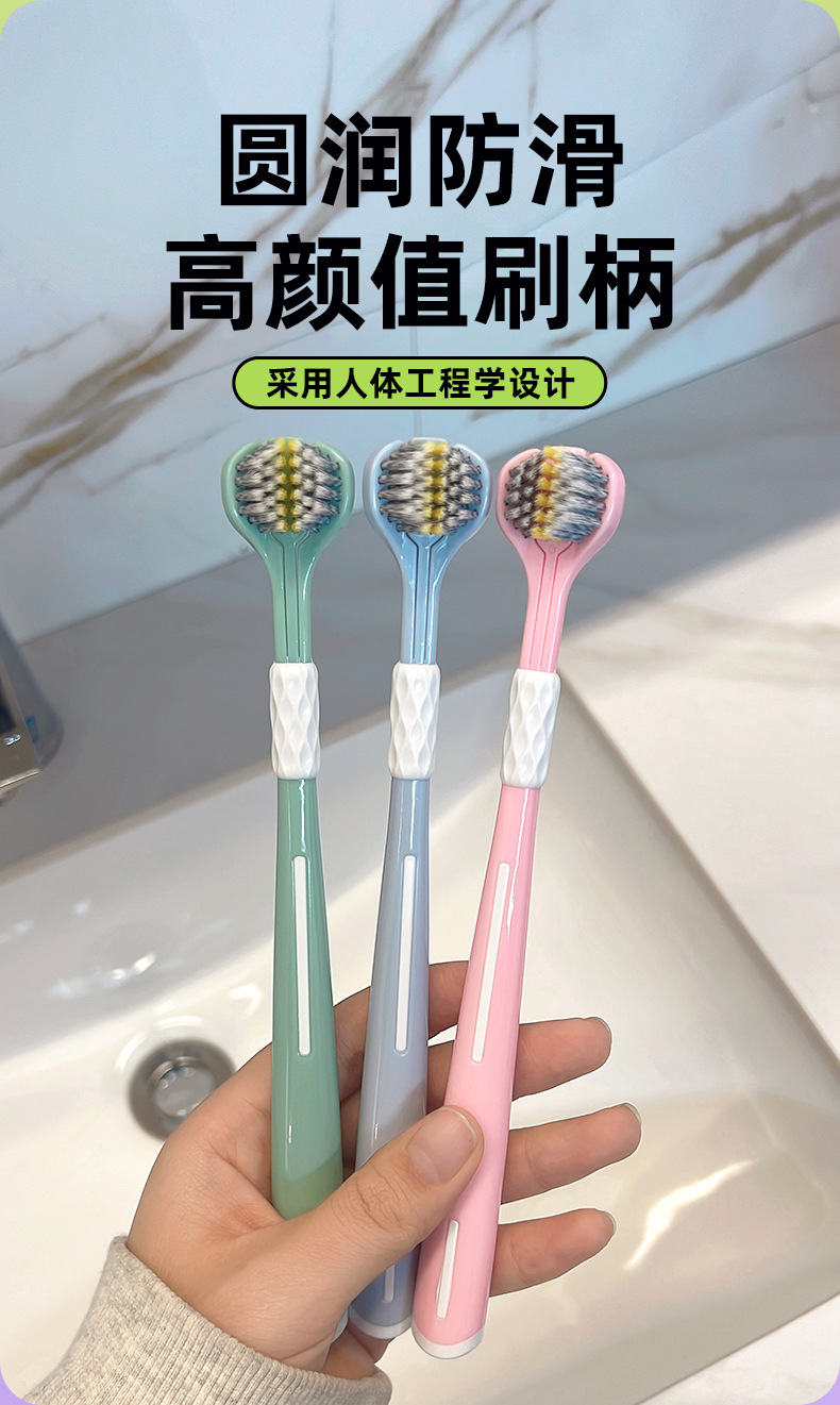 Disfrute de un cepillo de dientes de tres caras 3D estereoscópico cepillo de dientes de pelo suave, dientes limpios de alta calidad, alta calidad de la piel, lengua limpia para parejas.