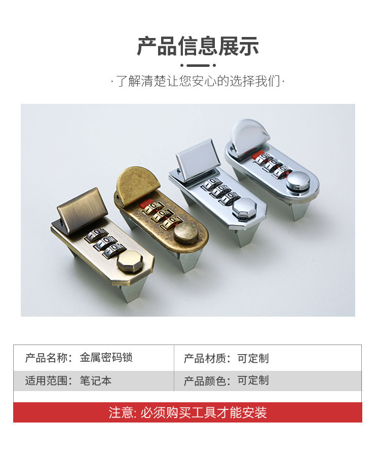 Cerradura de contraseña de computadora portátil al por mayor de fábrica cerradura de Apple para equipaje cerradura de hardware retro cerradura de contraseña ovalada antirrobo en stock