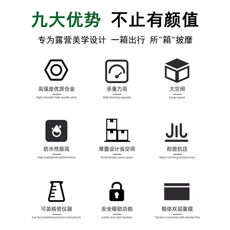 AW Anwang 30,50,80L caja de aleación de aluminio negro equipo de campamento al aire libre clasificación de artículos diversos caja de almacenamiento con tapa abatible