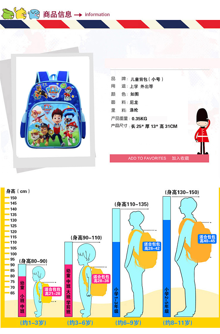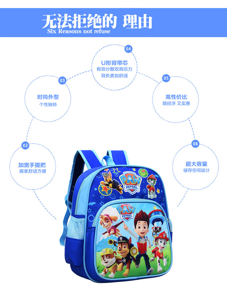 Comercio exterior kindergarten mochila dibujos animados impreso lindos niños y niñas reducción de carga wangwang equipo mochila grado uno y dos mochila