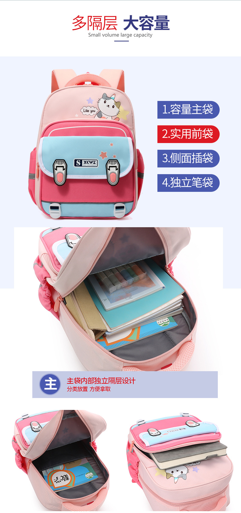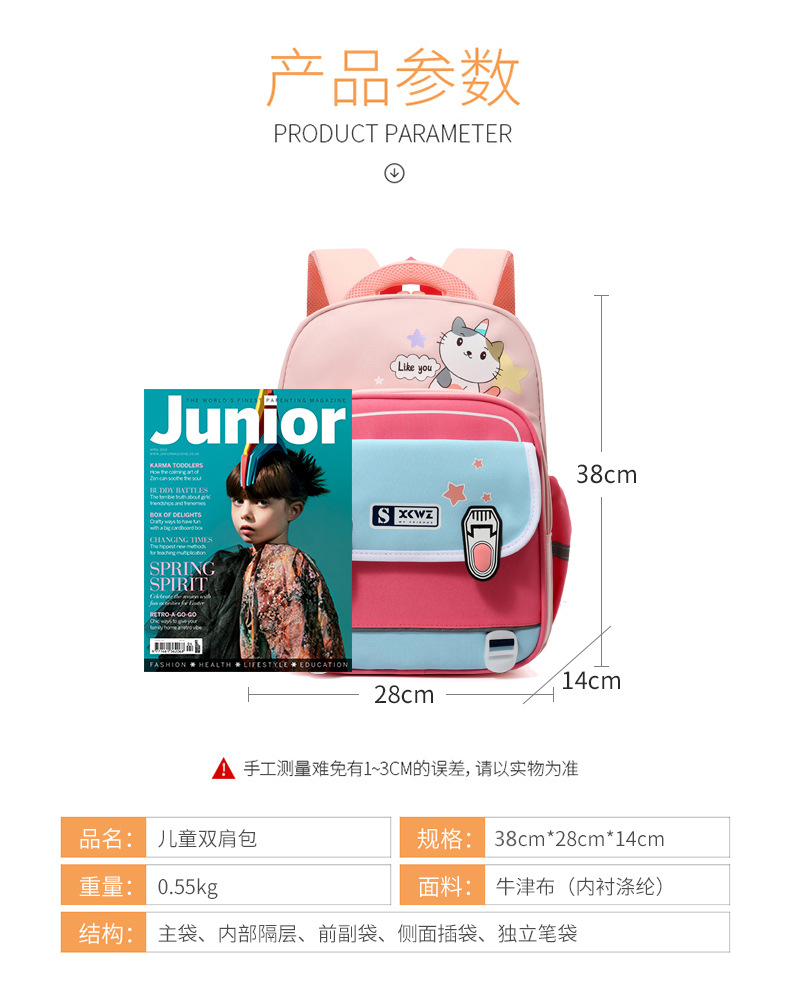 Mochila de gran capacidad de sándwich de tela Oxford de dibujos animados Fábrica al por mayor escuela primaria niños mochila de reducción de carga de protección de la columna