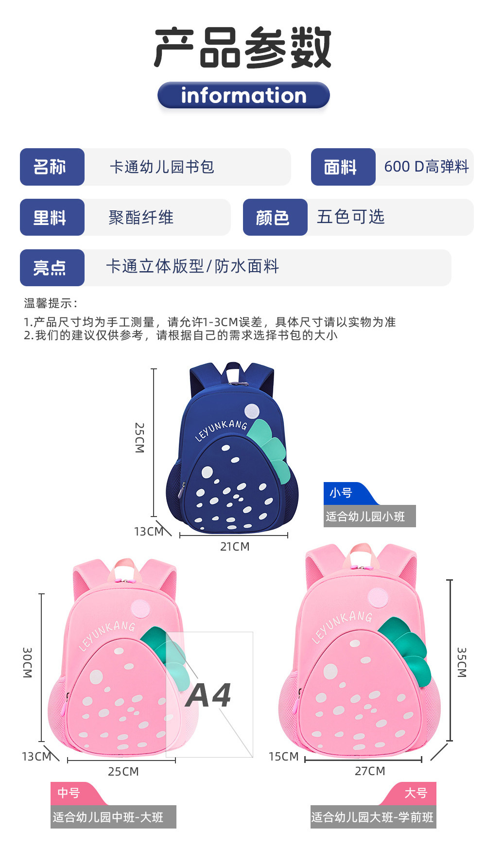 Nueva mochila de jardín de infantes Fresh Little Strawberry Kids Cartoon Mochila para niños y niñas de 3 a 6 años Mini bolso Mochila