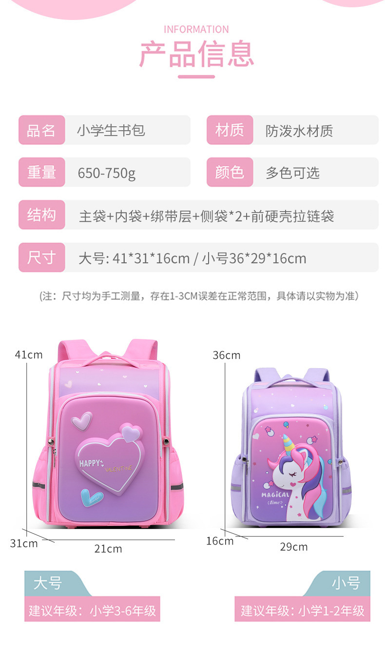 Bolsa de escuela Nueva mochila linda de primer grado para niñas resistente al desgaste mochila de escuela primaria para niñas al por mayor