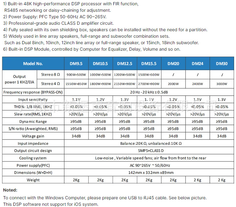 Amplificador profesional de clase D de doble canal de 1200W 500W Módulo de altavoz activo DSP con altavoz de matriz de línea de 10 pulgadas