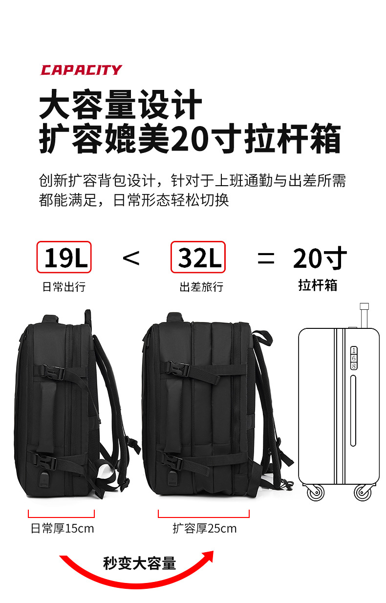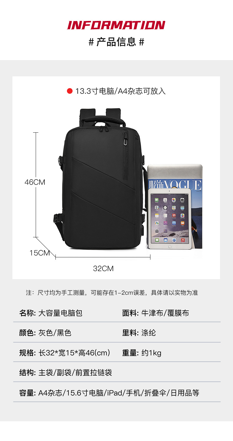 Nueva mochila de negocios Bolsa para portátil de tela Oxford de 16 pulgadas Bolsa de viaje para hombre USB de gran capacidad expandible