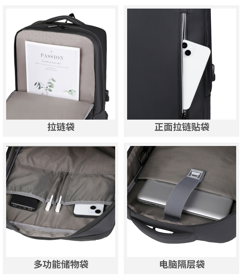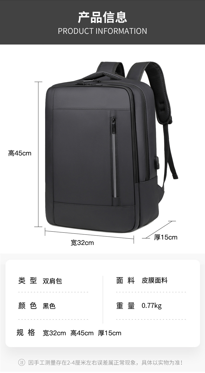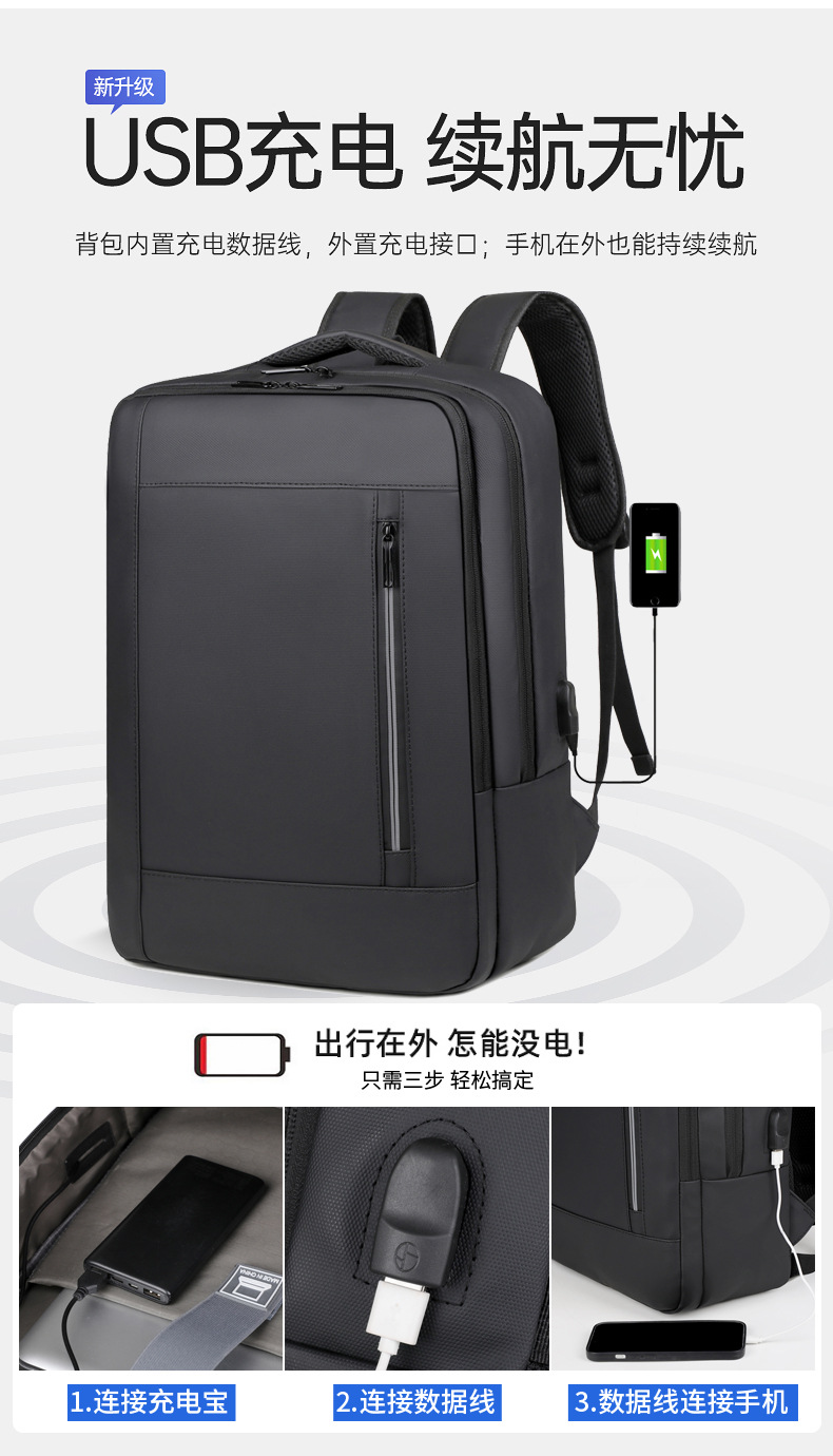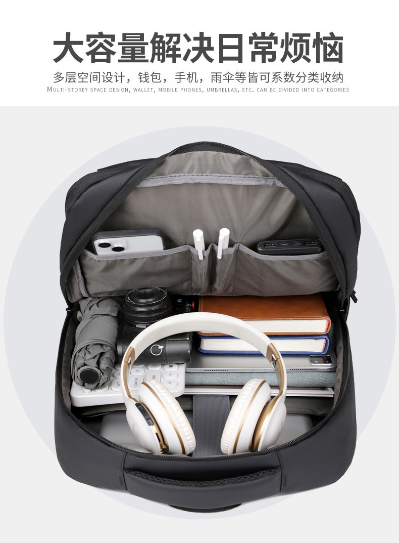 Mochila multifuncional transfronteriza, mochila de computadora de gran capacidad, mochila de viaje multicapa de color sólido.