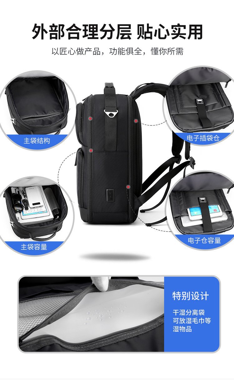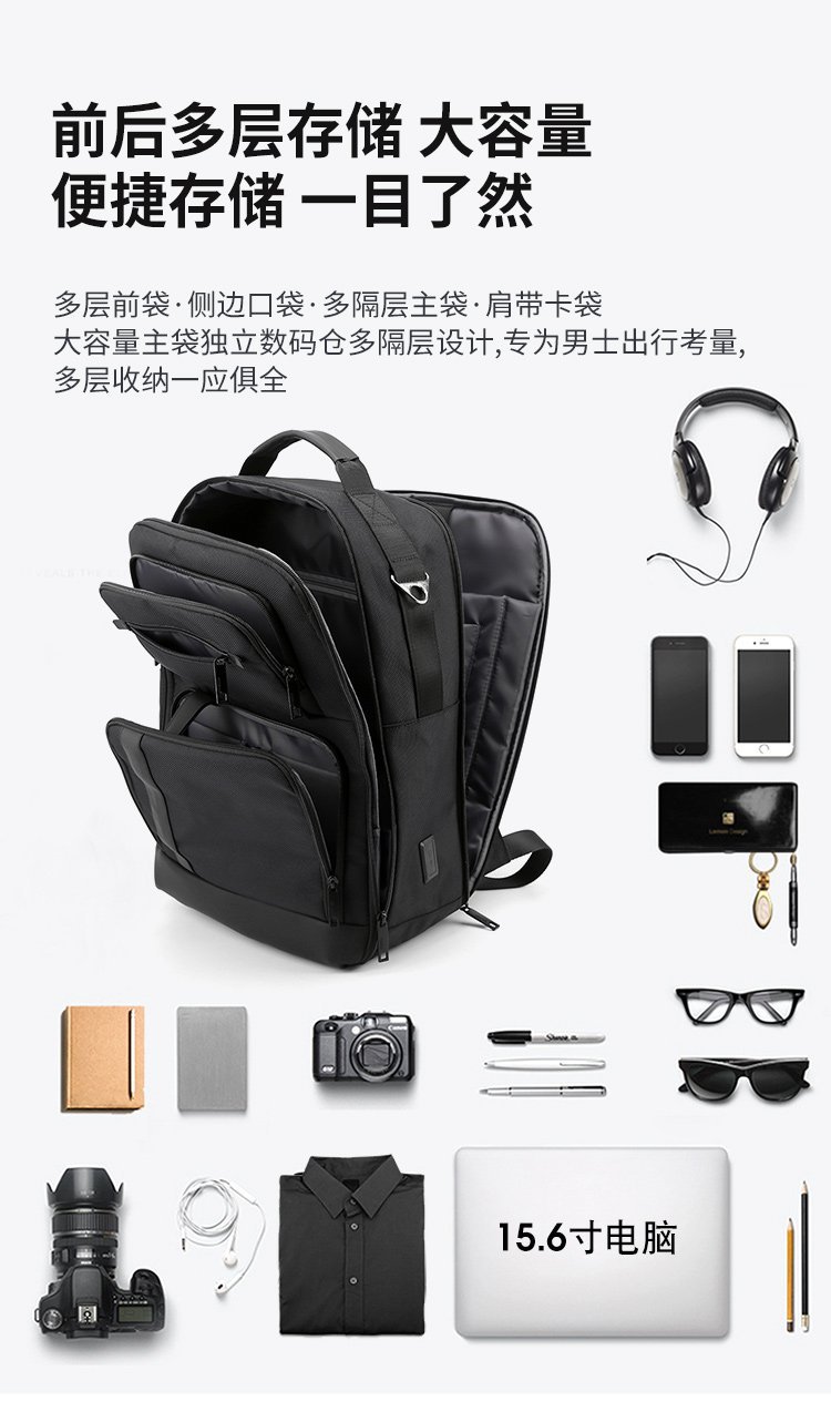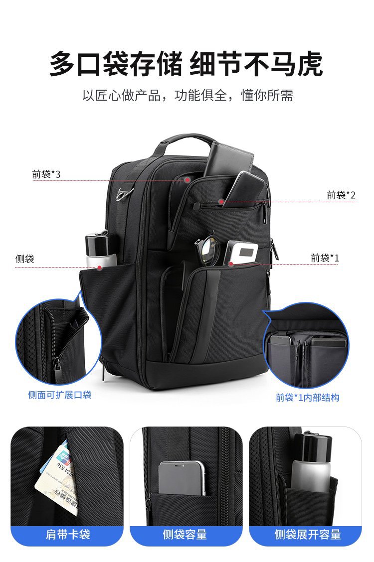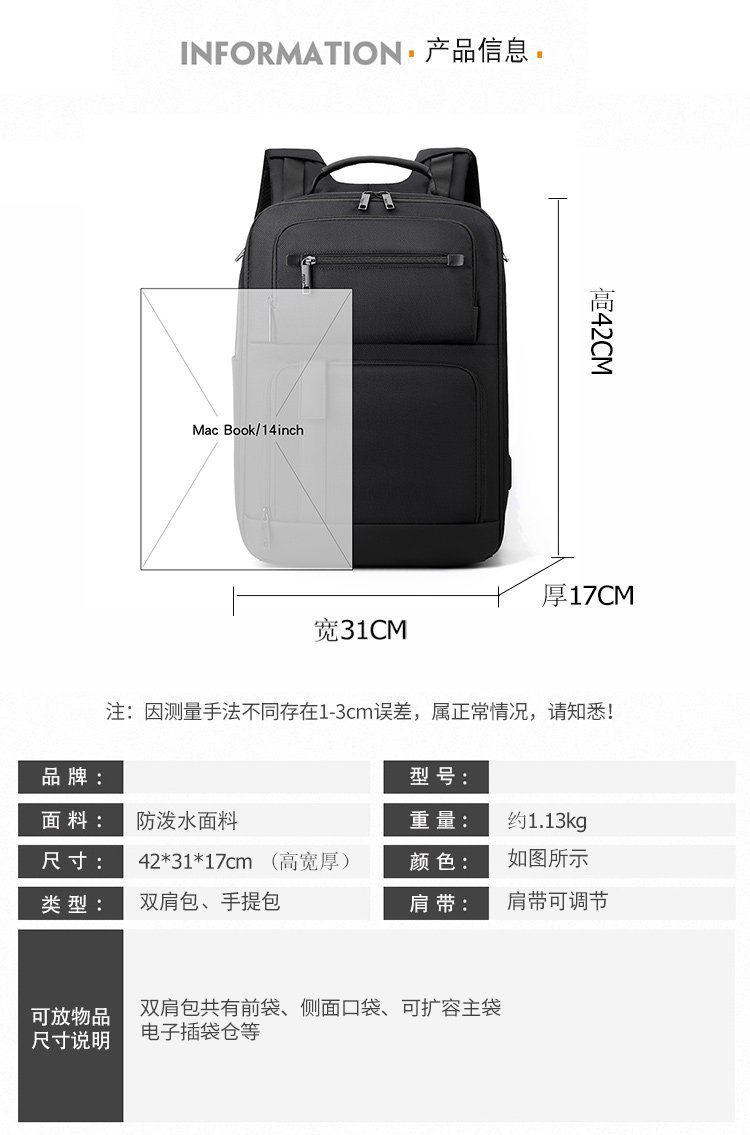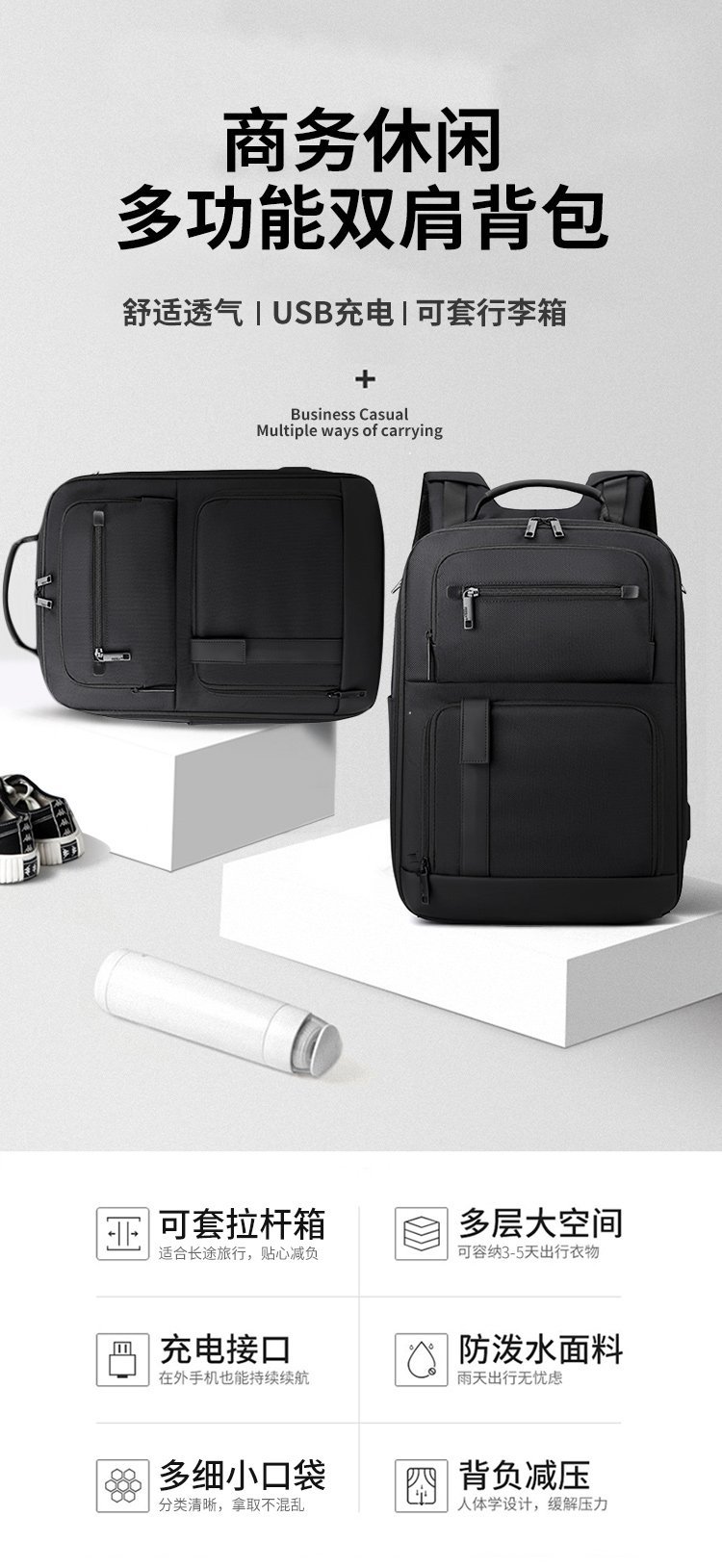 Cross-border nuevo hombre de moda bolso de negocios ocio simple mochila negra mochila de textura alta impermeable