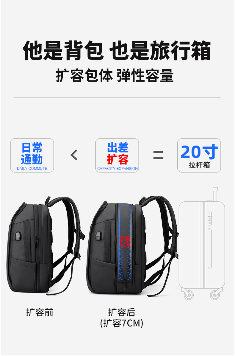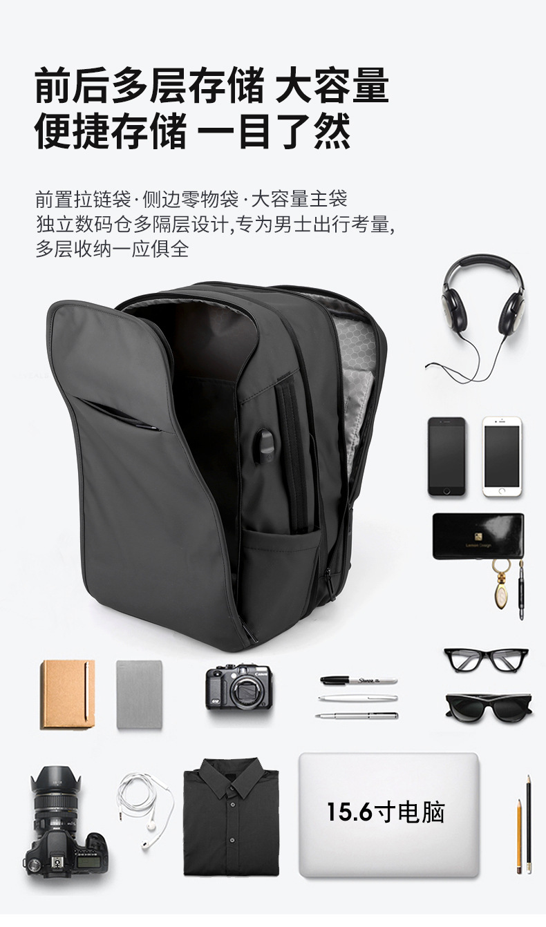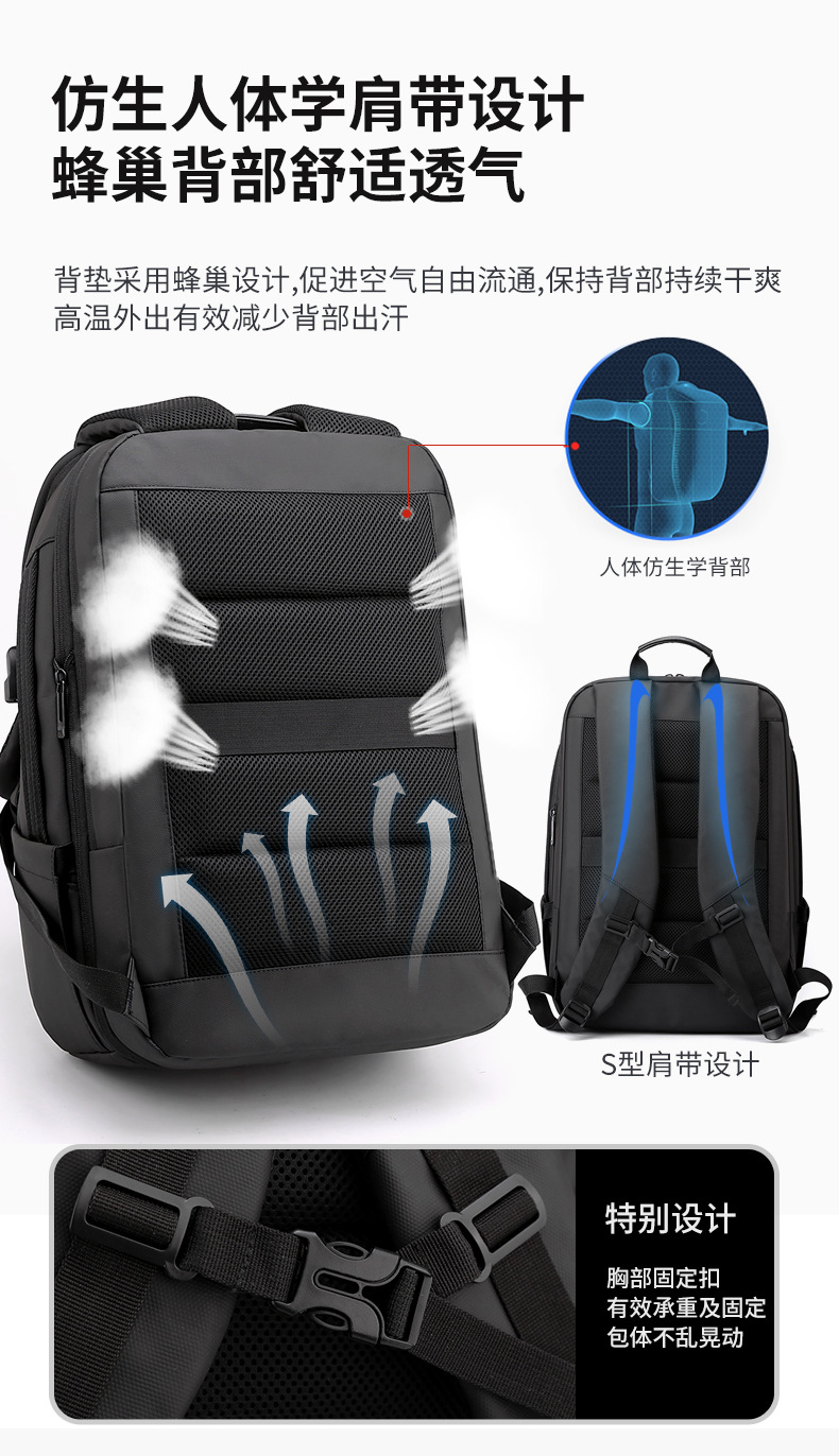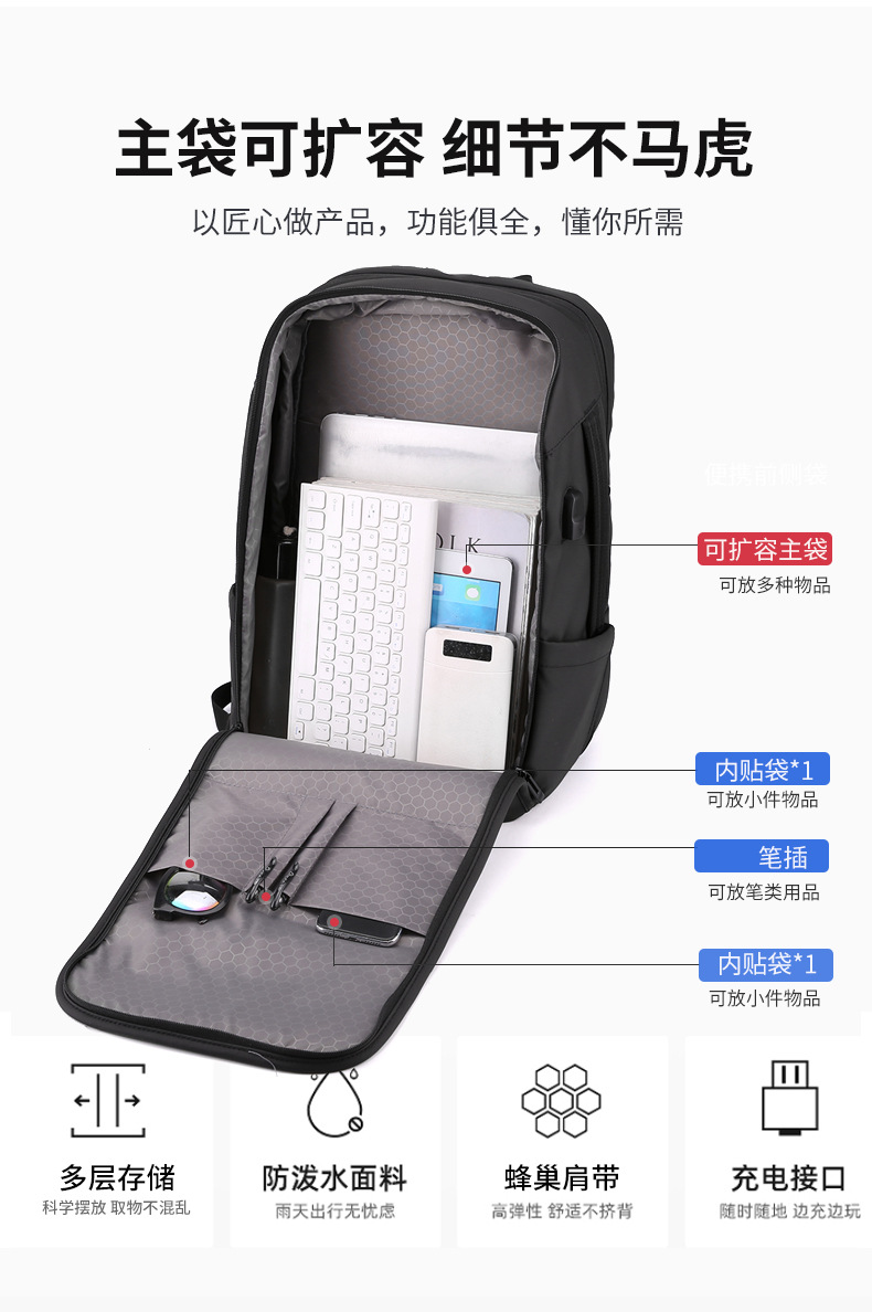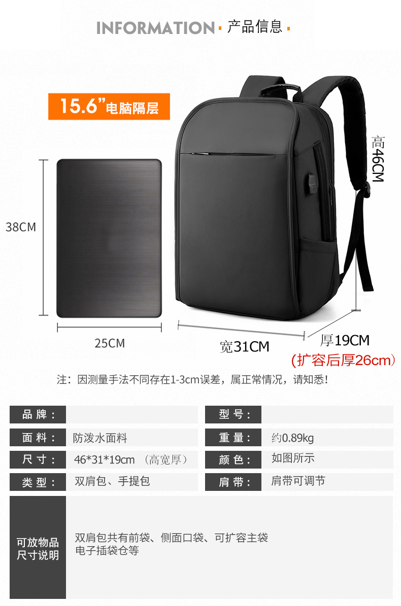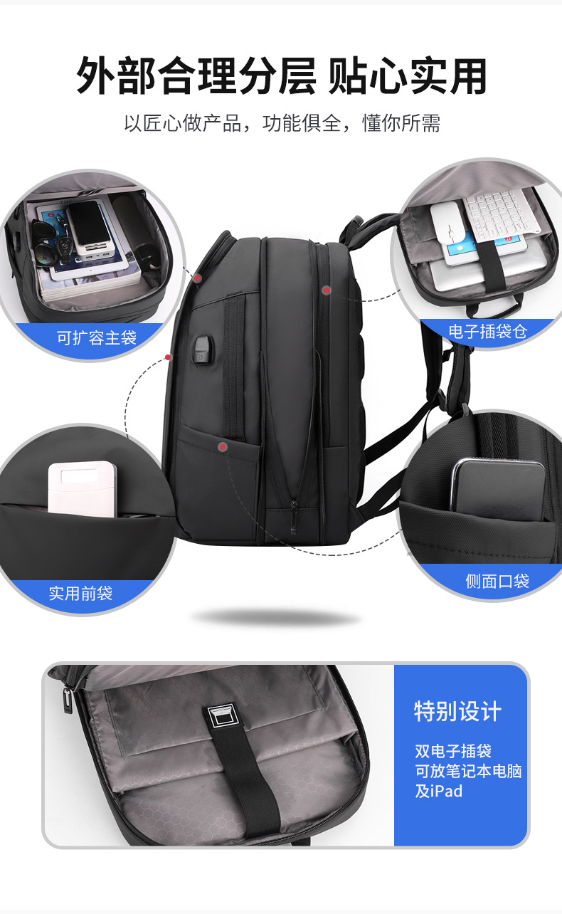Nuevas mochilas de negocios transfronterizas para hombres, mochilas de computadora recargables USB, mochilas de gran capacidad, estudiantes de secundaria, estudiantes universitarios