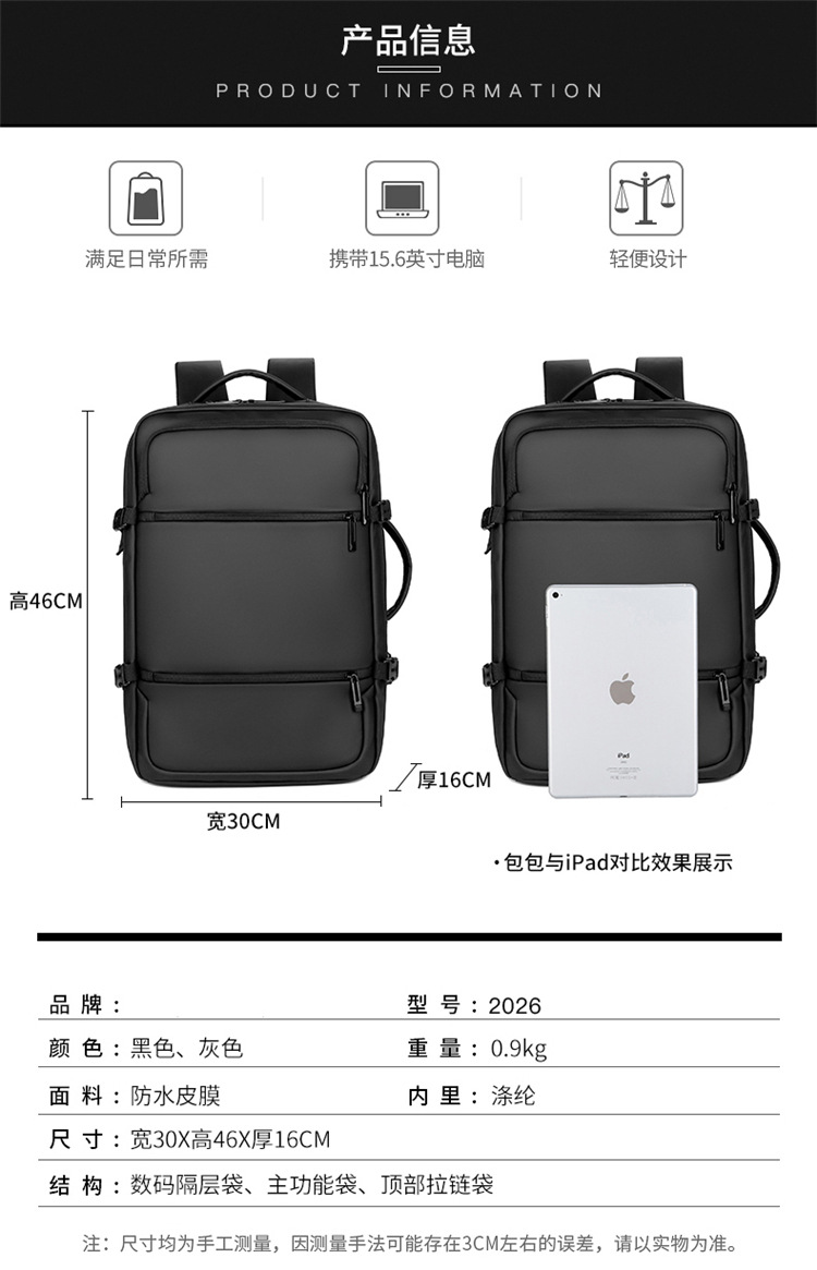 Mochila de negocios transfronterizos transfronterizos para hombres Mochila de viaje al aire libre multifuncional de gran capacidad Mochila de película USB