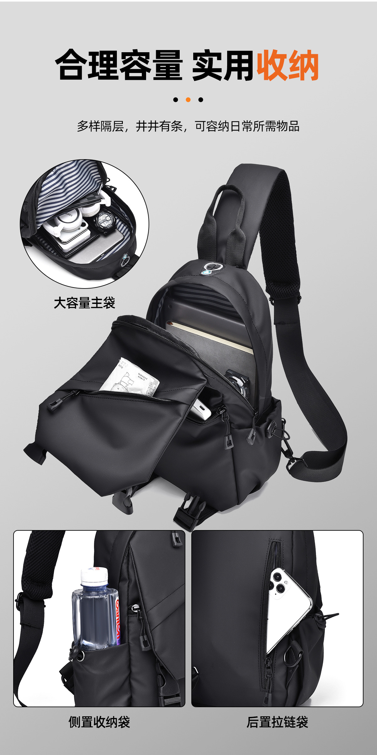 Bolso de pecho informal a la moda con múltiples bolsillos para hombre, bolso cruzado, nuevo bolso de hombro de gran capacidad para deportes de ciclismo al aire libre