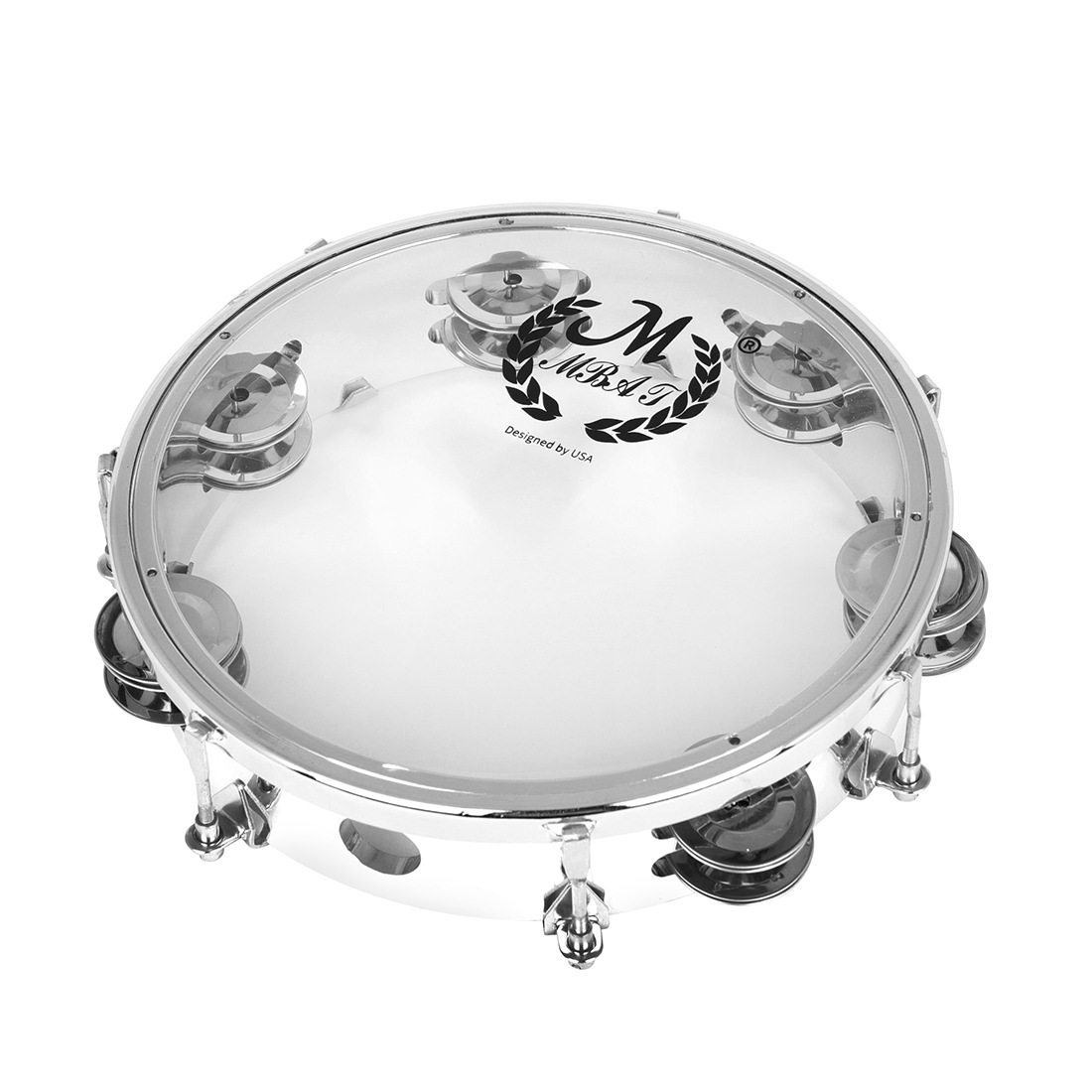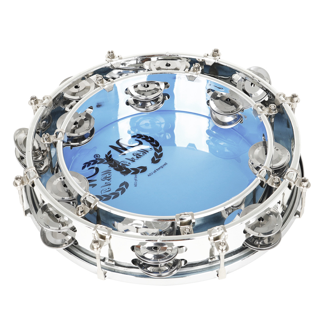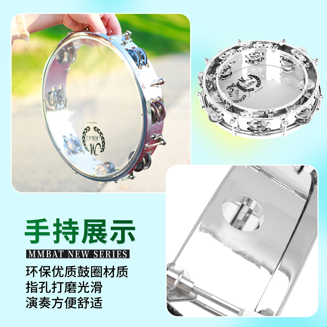 Meibeite de 8 pulgadas de 10 pulgadas de autoajuste de doble fila sonajero banda de tambor tocando el acero inoxidable anillo de plata campana pieza raqueta tambor