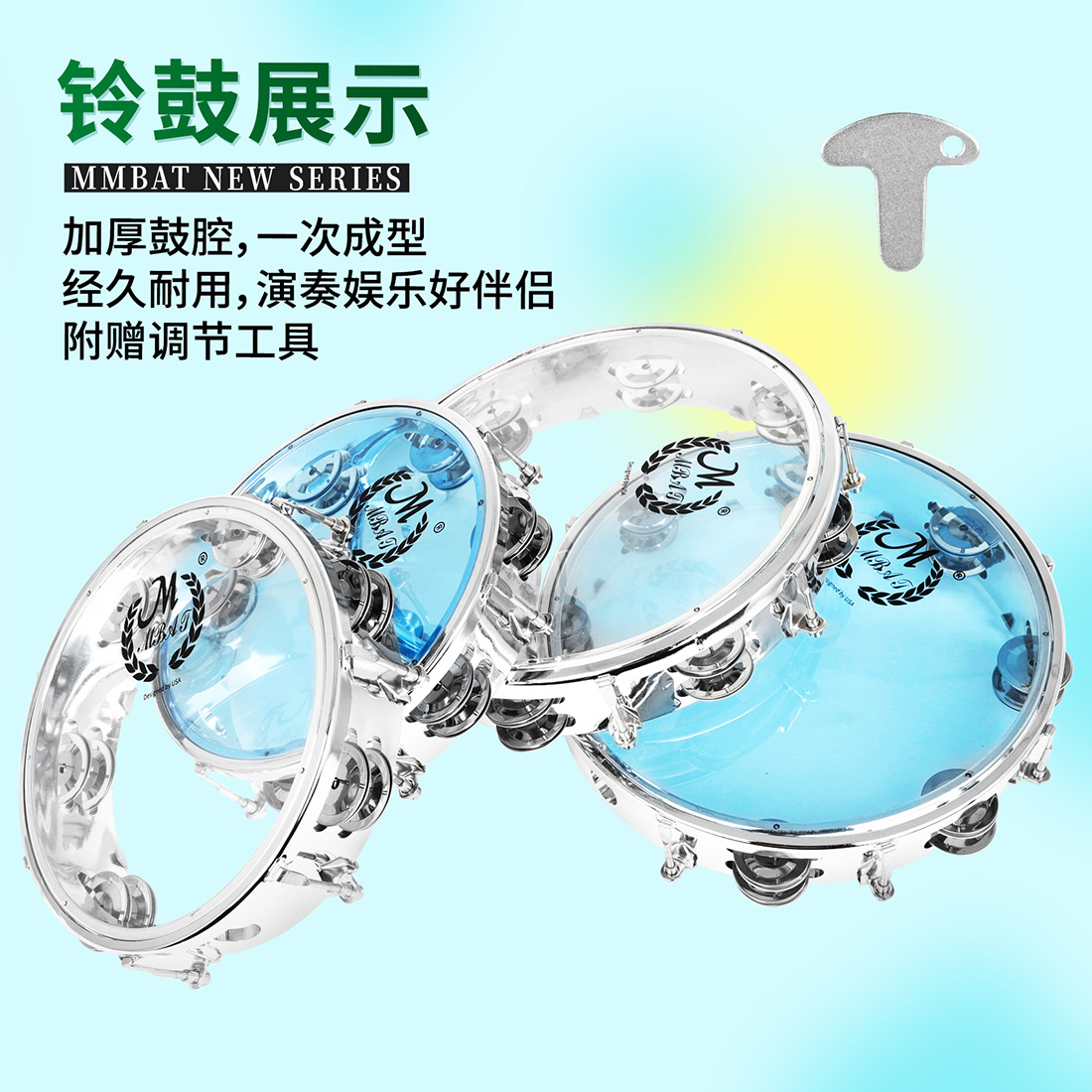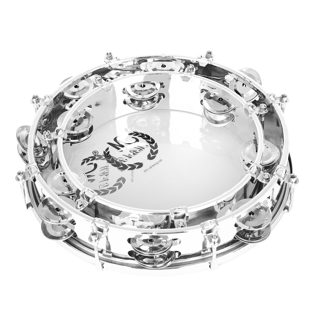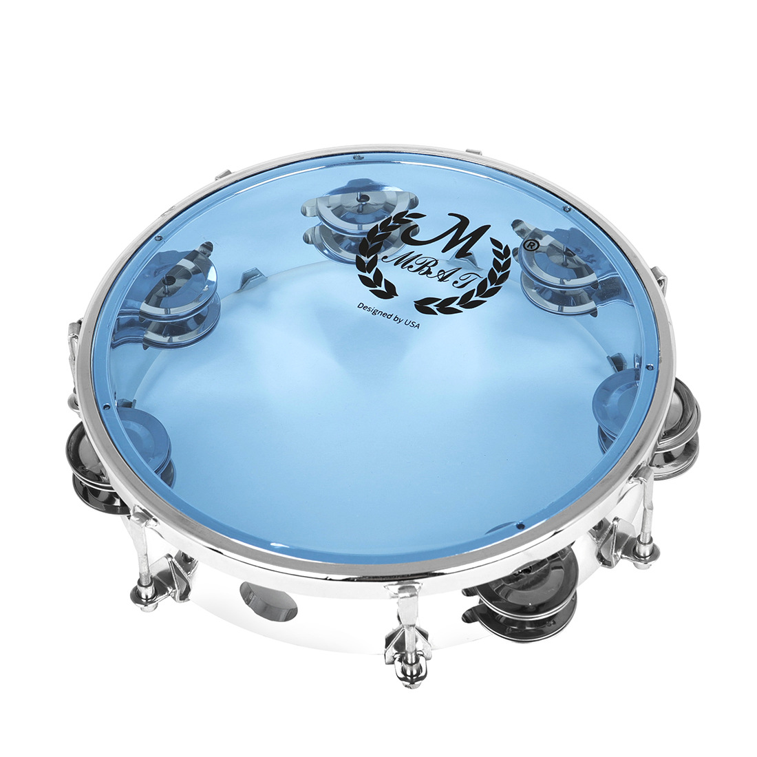 Meibeite de 8 pulgadas de 10 pulgadas de autoajuste de doble fila sonajero banda de tambor tocando el acero inoxidable anillo de plata campana pieza raqueta tambor
