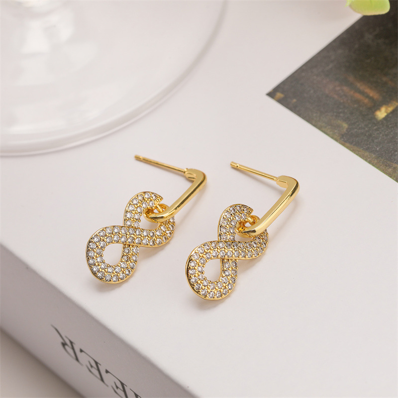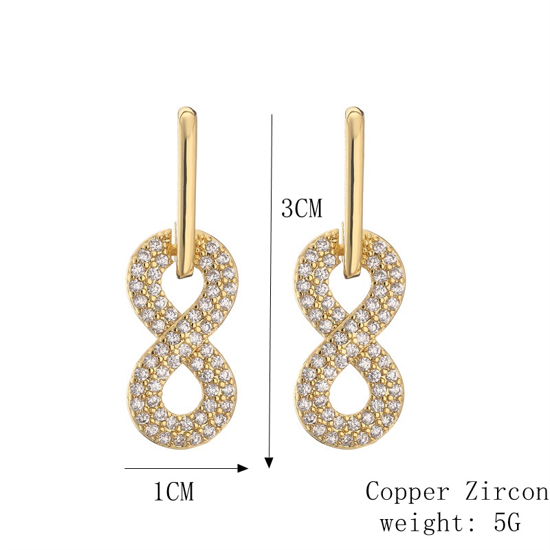 Venta caliente europea y americana transfronteriza cobre chapado en oro encantador 8-palabra Stud pendientes simple diseño de moda pendientes de todo fósforo moda