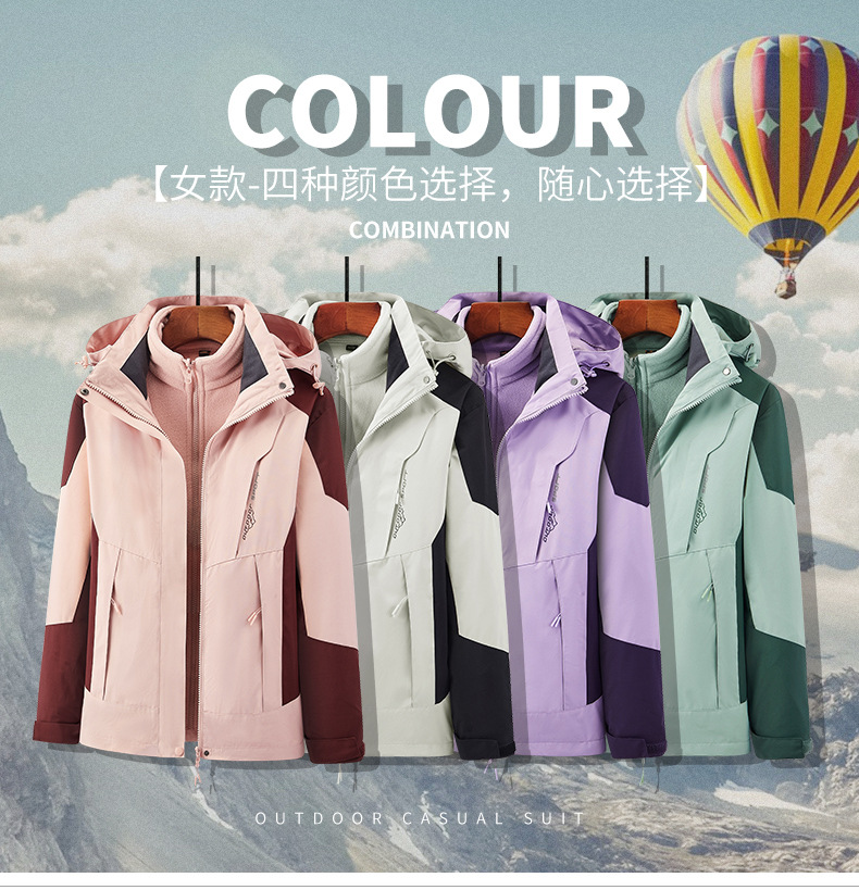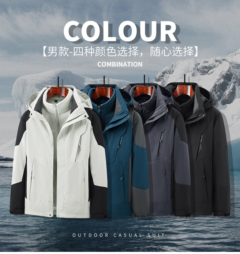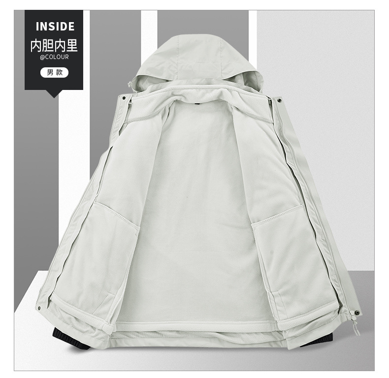3 - en - 1 ropa de asalto para hombres al aire libre dos piezas de relleno de terciopelo interior otoño invierno montañismo impresión de logotipo fijo ropa de trabajo mujer