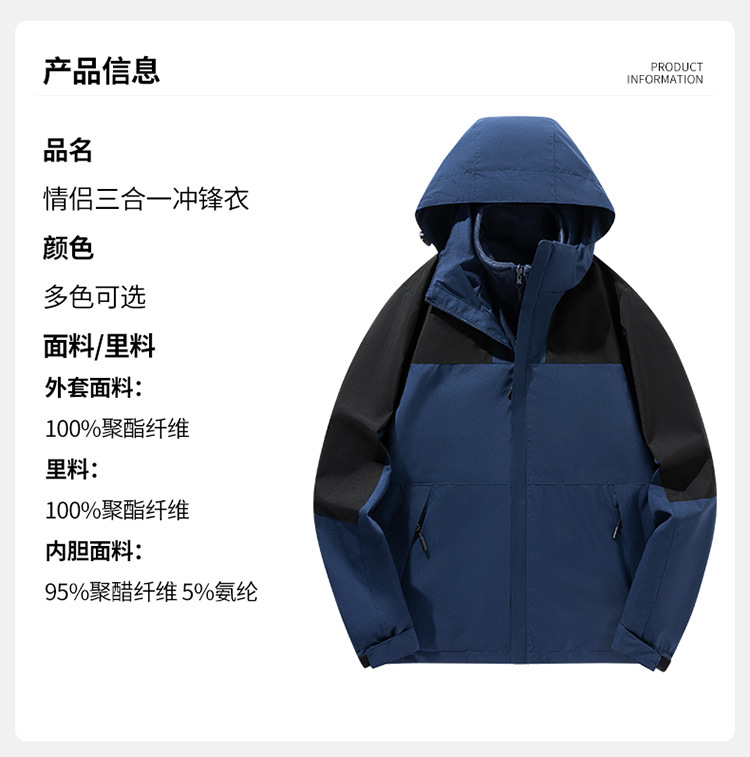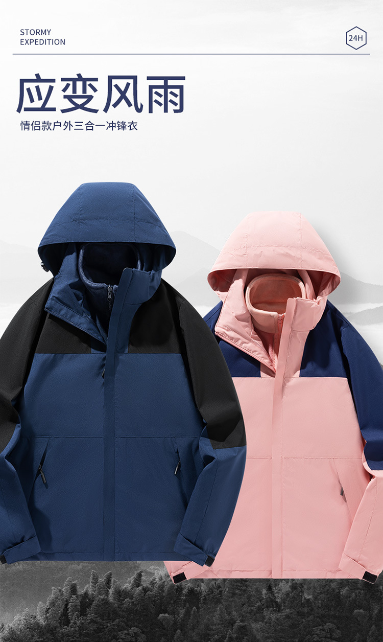 Otoño y invierno nuevo estilo de moda al aire libre pareja deportiva casual traje de asalto impermeable a prueba de viento traje de montaña 3 - en - 1 abrigo