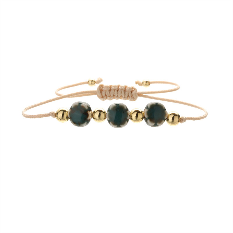 Venta caliente transfronteriza europea y americana pulsera de cerámica de flor de seis pétalos TEMU pequeña y fresca pulsera con cuentas de todo fósforo joyería spot al por mayor