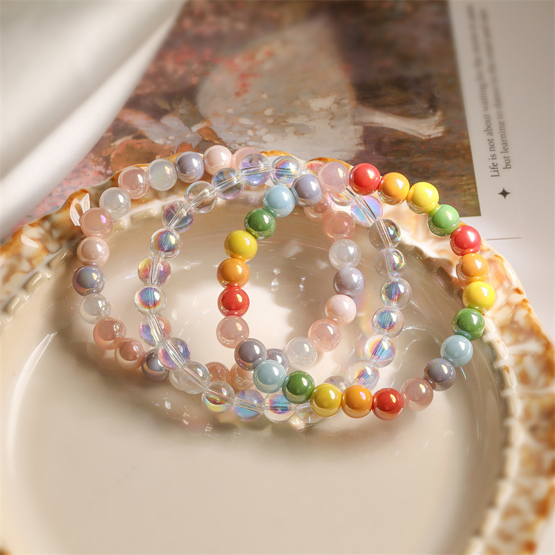 Transfronterizo Amazon Venta caliente Pulsera de cuentas redondas de cristal transparente natural de 8mm Pulsera de cuentas de cuerda elástica de todo fósforo de moda