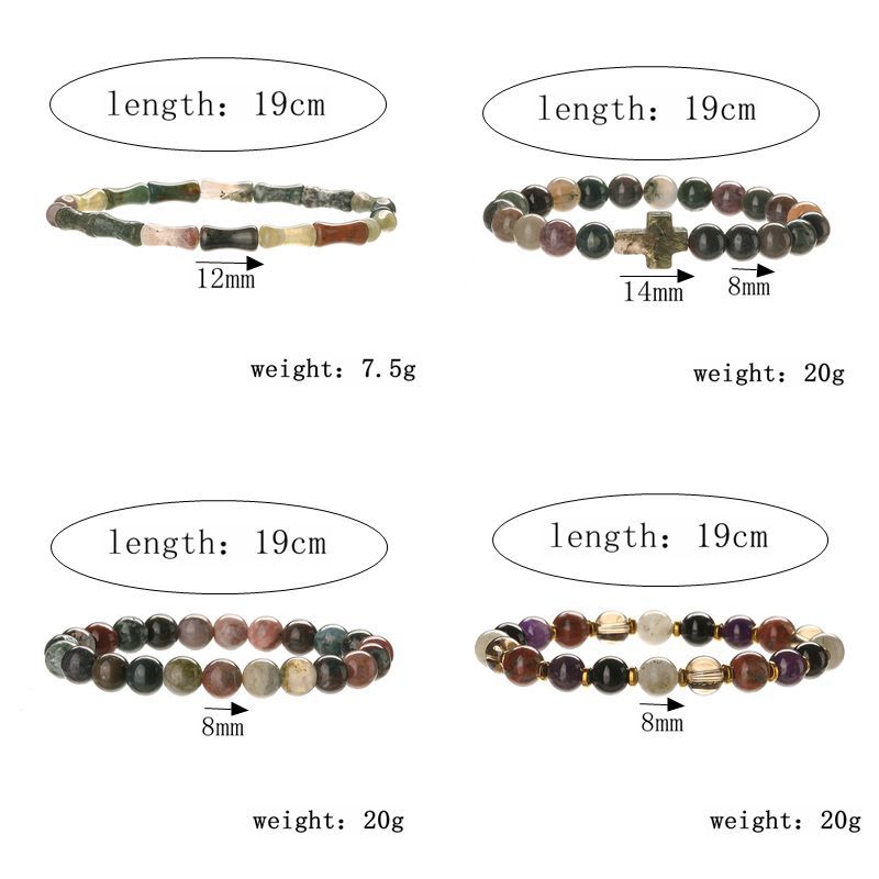 Creativa nueva pulsera de cuentas de ágata natural china, cuentas de bambú, cruz, cuerda elástica, pulsera para niñas, joyería al por mayor