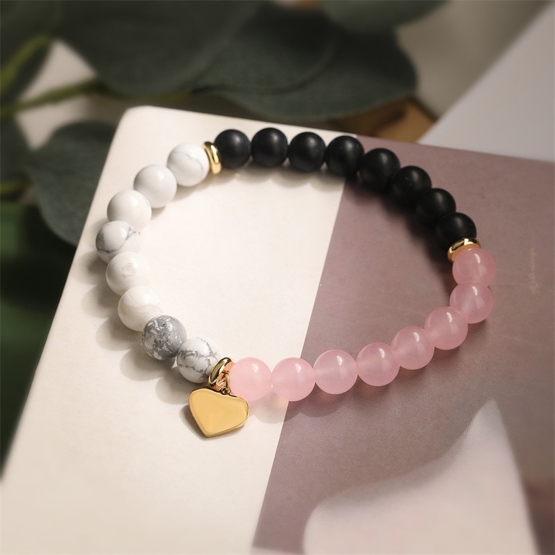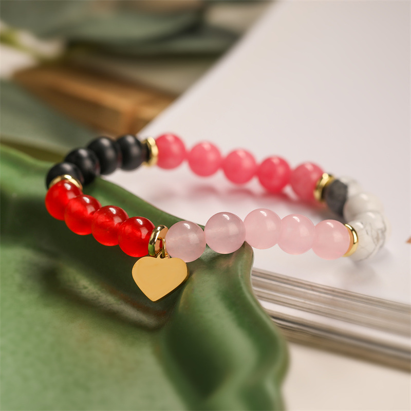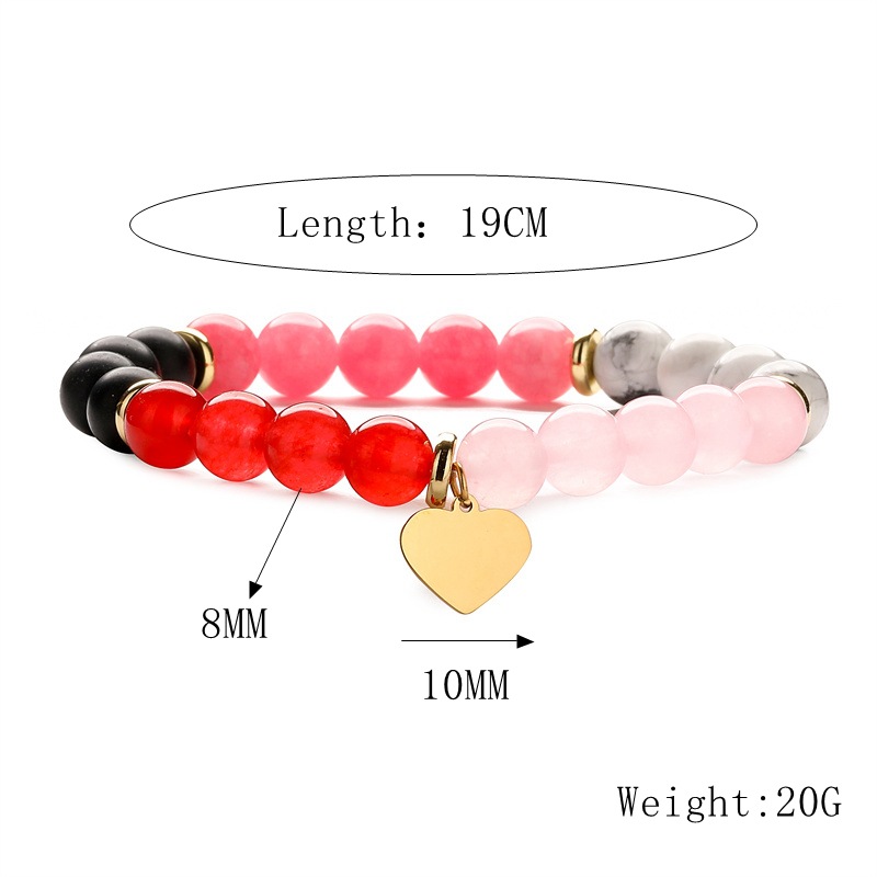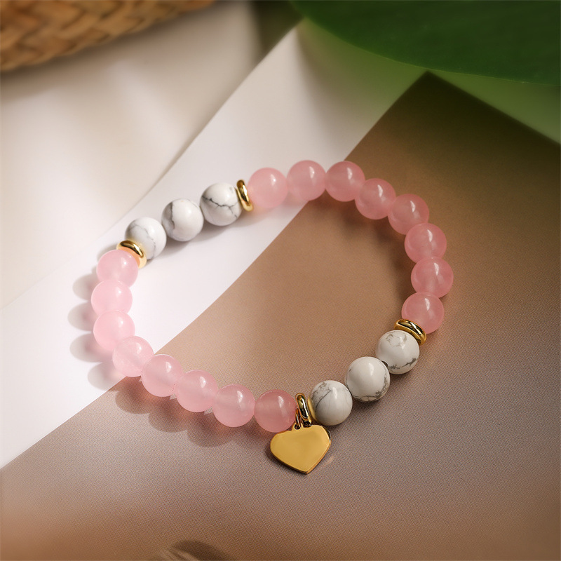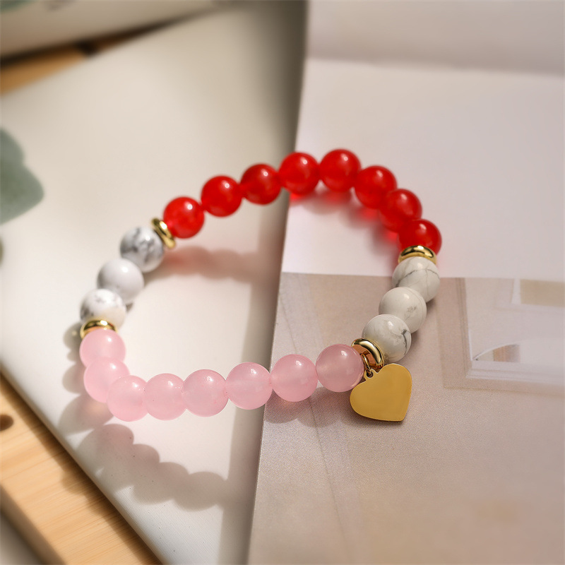 Europa y los Estados Unidos piedra ágata natural pulsera de cuentas pulsera de polvo rosa rosa pulsera de acero inoxidable joyería colgante amor