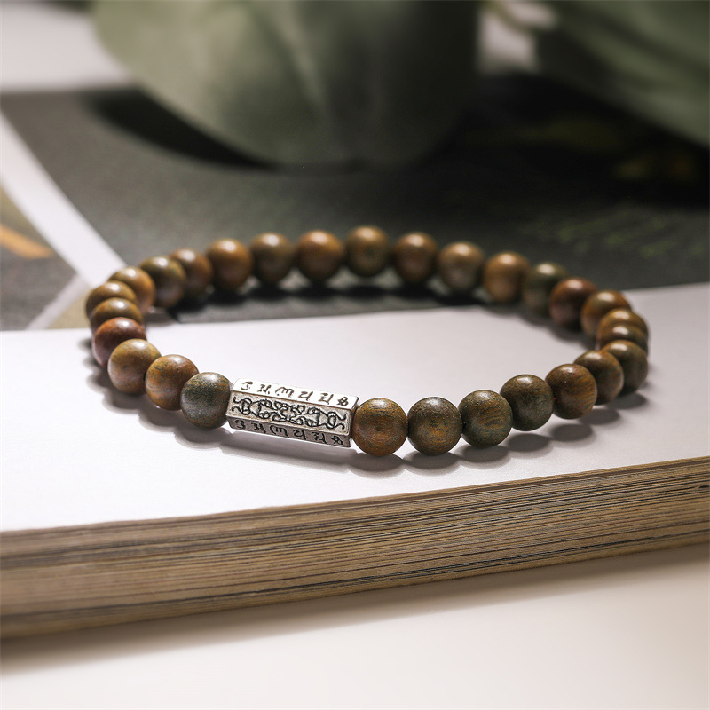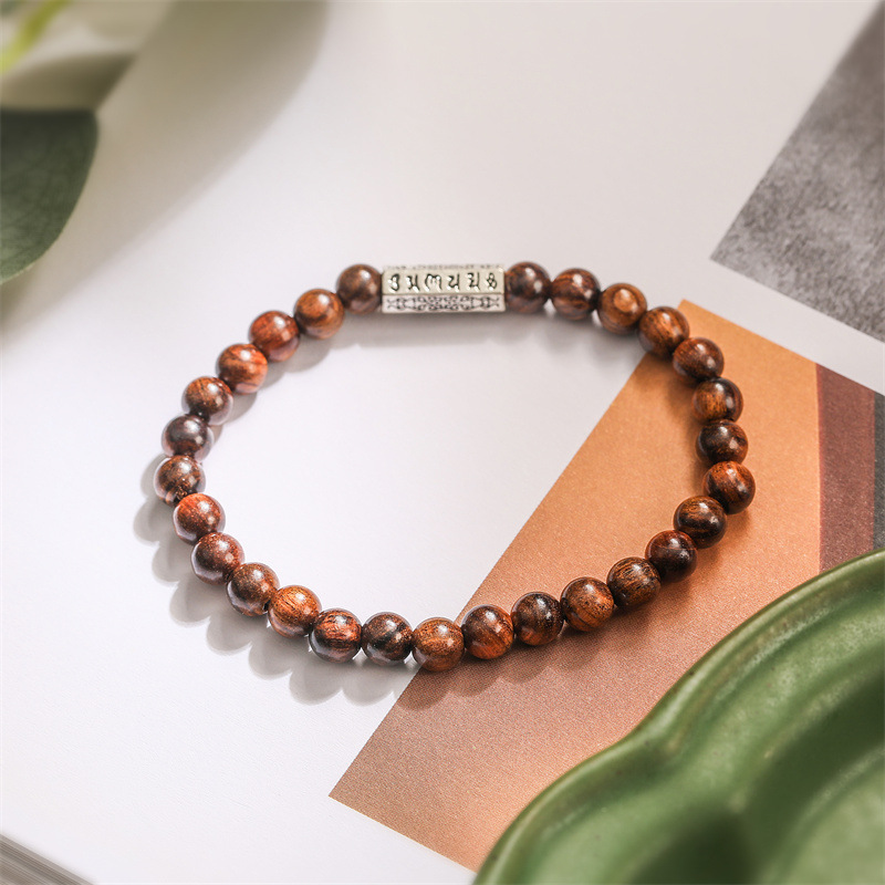 Nuevo estilo chino de 6MM piedra natural pulsera de cuentas mujeres ins nicho de lujo ligero cuerdas de madera elásticas pulsera joyería TEMU