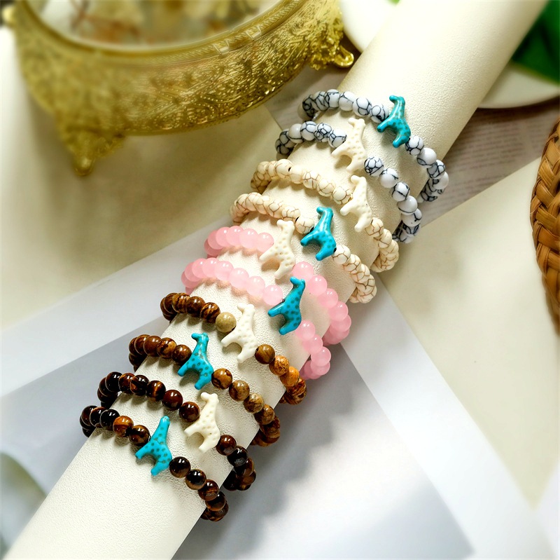 Amazon TEMU animal girafa pulsera elástica azul pino volcán azul oro cuentas pulseras desear explosión