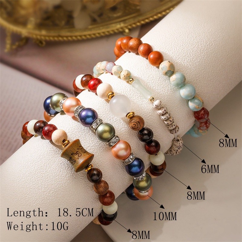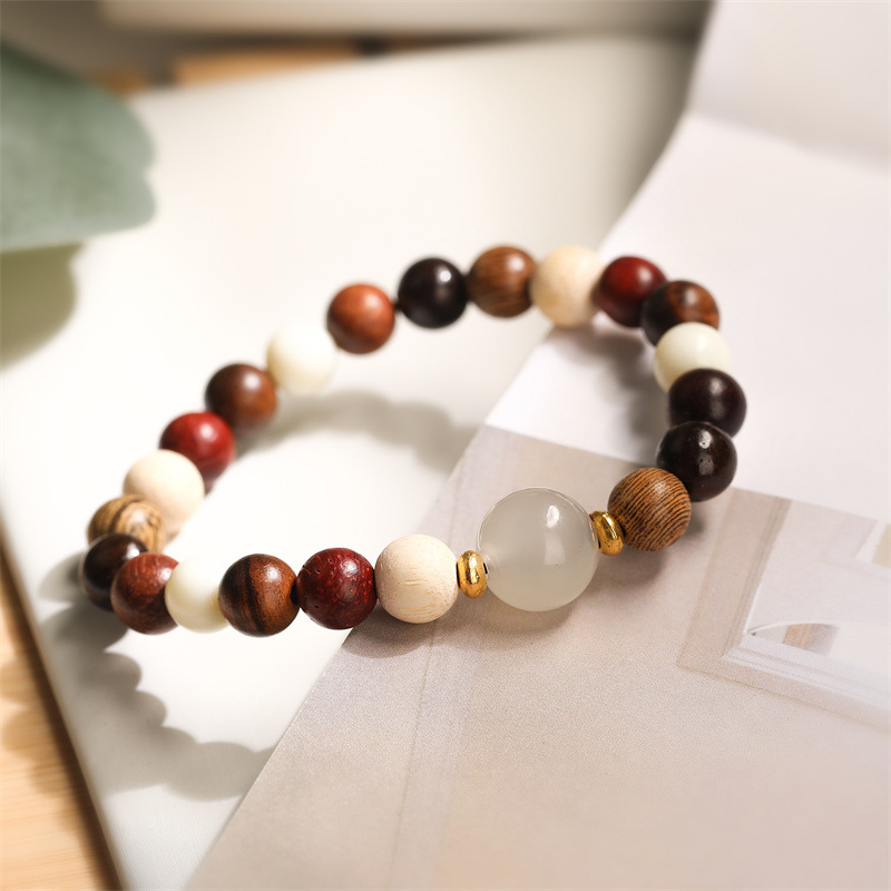 Piedra de ágata natural, perlas de madera, pulseras de cuentas, joyas de estilo nacional, pulseras de piedra Shoushan de estilo chino.